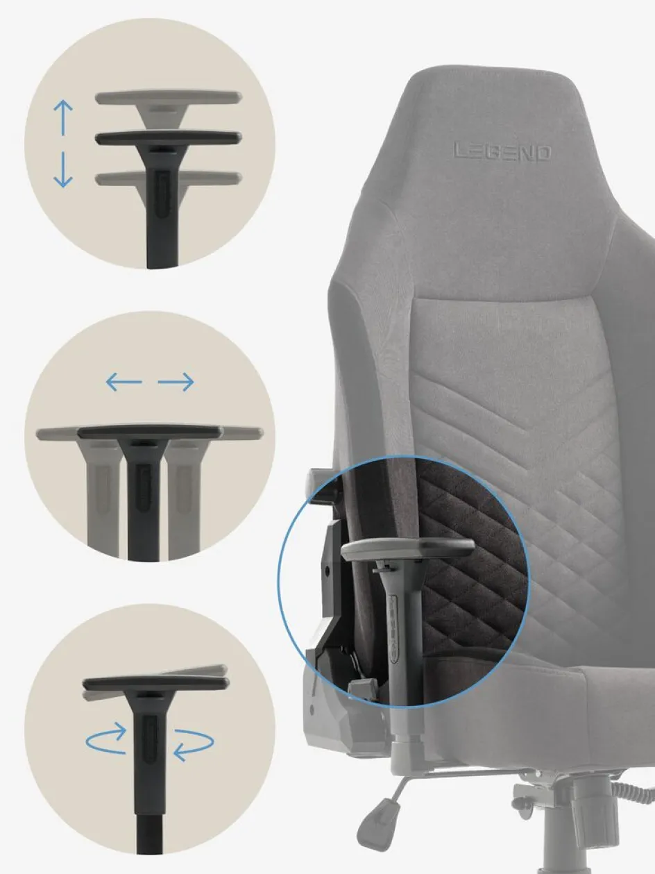 - Accoudoirs 3D ajustables: Réglage de la hauteur, de la profondeur et rotation gauche/droite