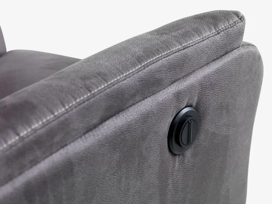 Structure : contreplaqué, HDF, pin/eucalyptus massif, acier. Garnissage : mousse polyuréthane (32 kg/m³), avec ressorts ensachés. Revêtement : polyester. Pieds : polyamide. Mécanisme de basculement électrique et repose-pieds intégré. l75 x H84-102 x P89-154 cm