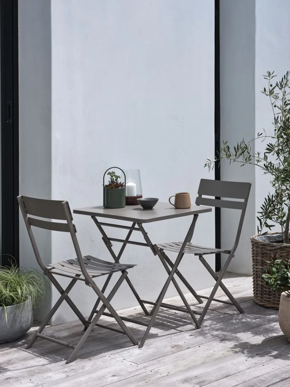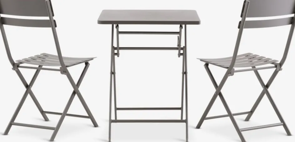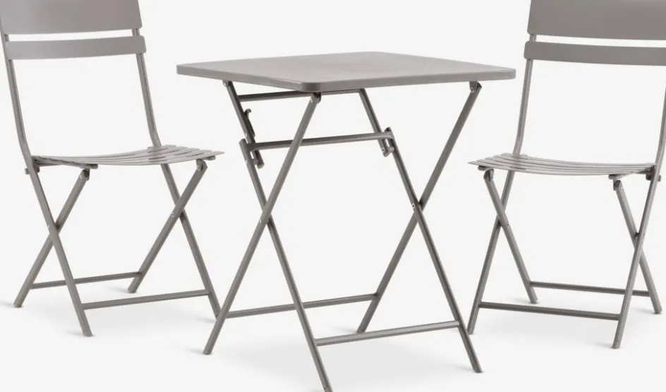 Ensemble bistrot 2 personnes. table : acier. Pliable. l60 x L60 x H71 cm. Chaise : acier. Pliable.