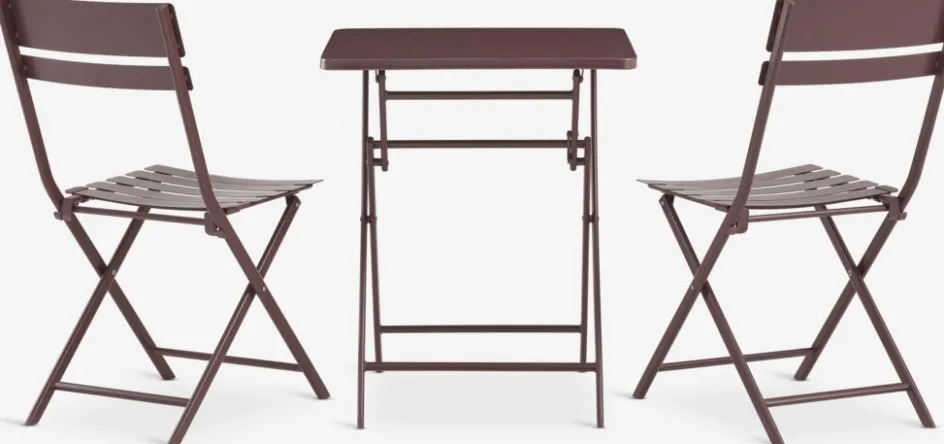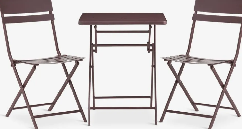 Ensemble bistrot 2 personnes. Table : acier. Pliable. l60 x L60 x H71 cm. Chaise : acier. Pliable.