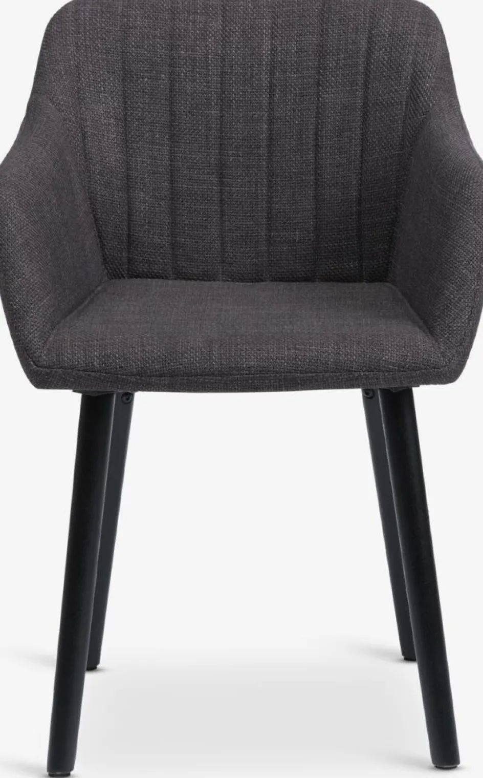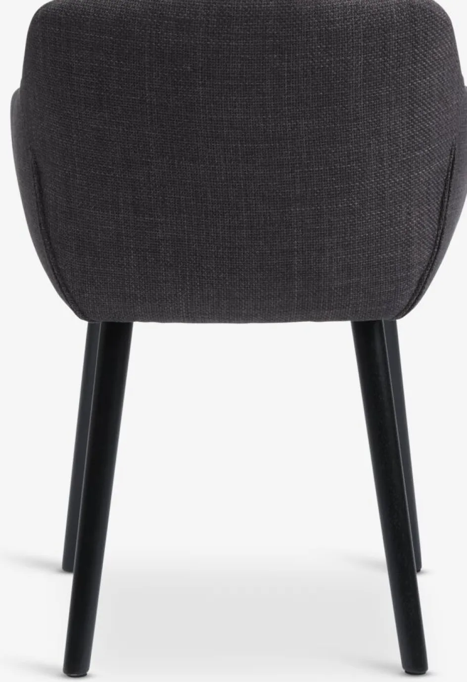 Chaise de salle à manger avec accoudoirs offrant un soutien et un confort supplémentaires. La chaise possède une assise rembourrée et un dossier en tissu gris anthracite. Pieds en bois massif.