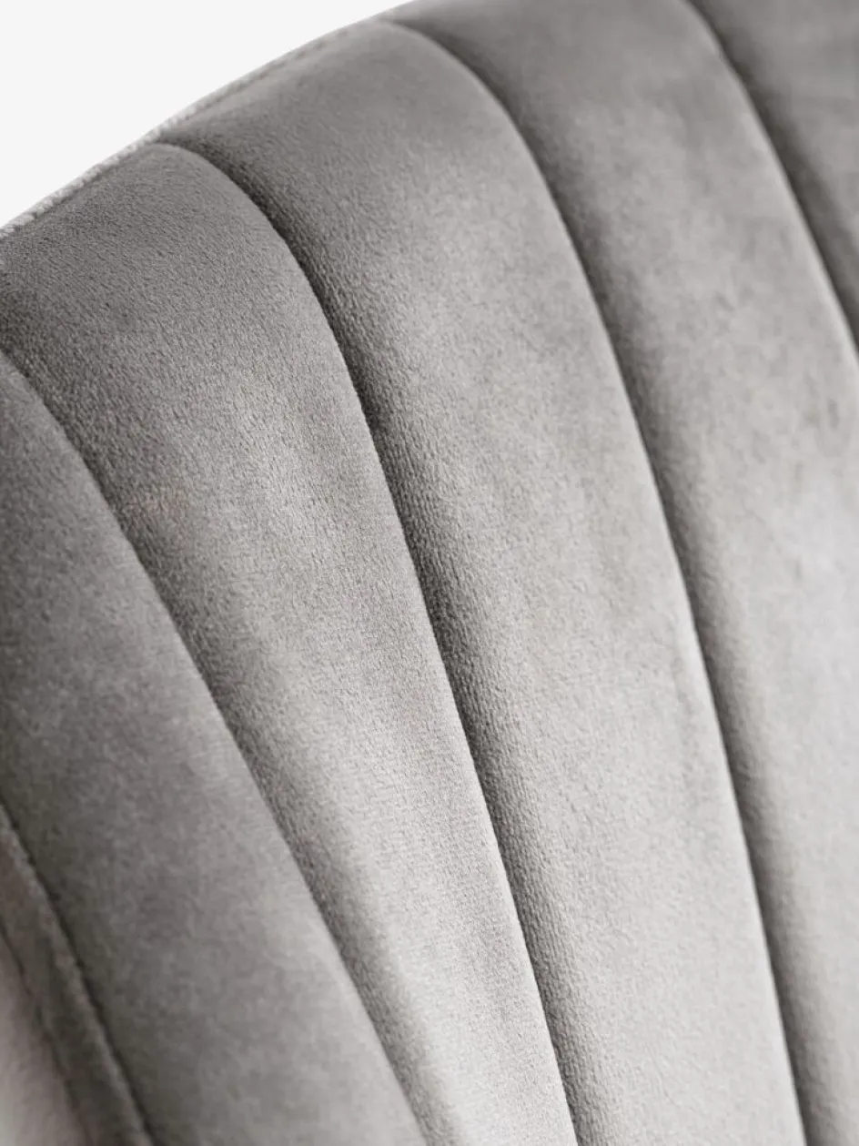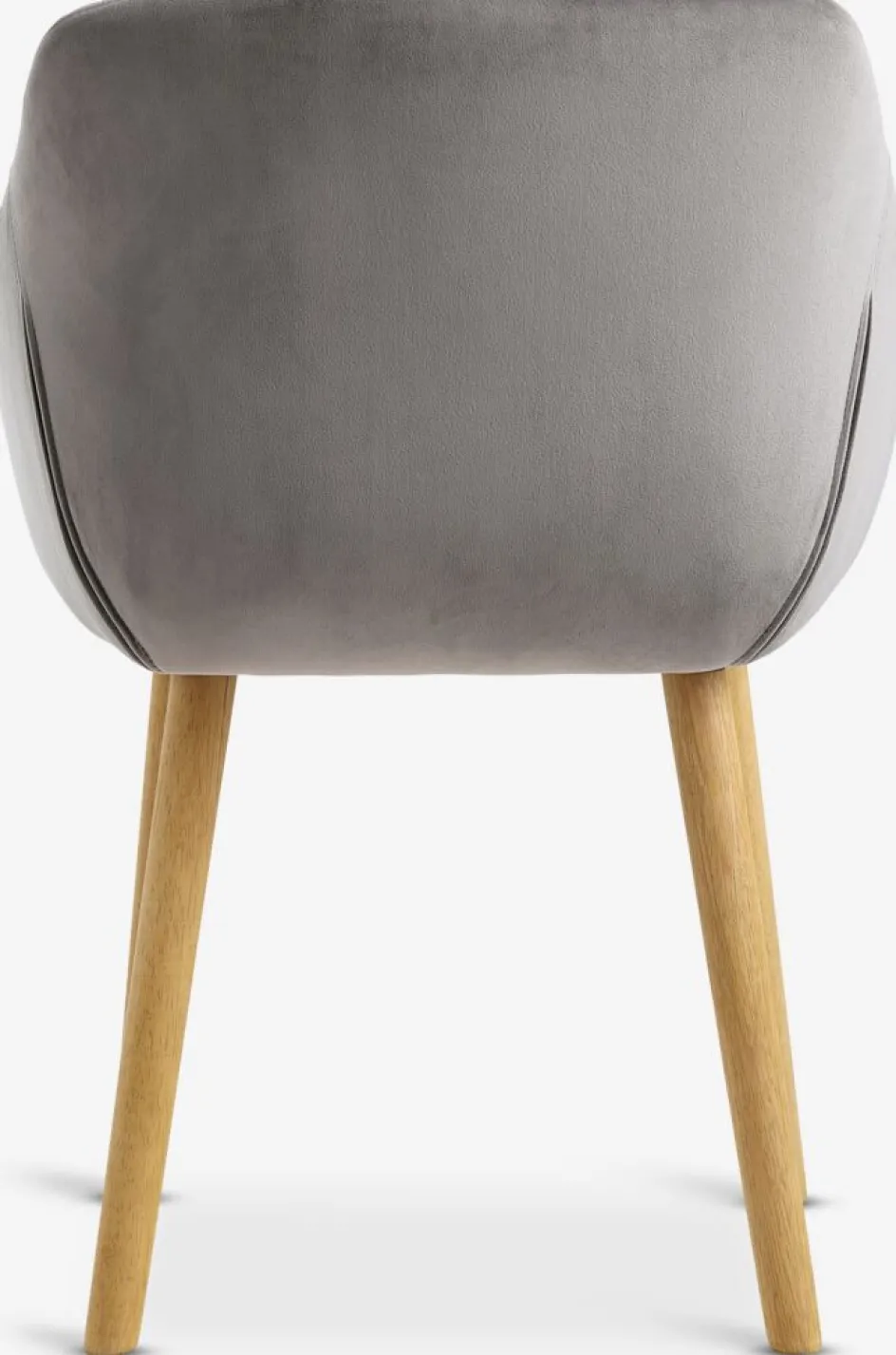Chaise de salle à manger avec accoudoirs offrant un soutien et un confort supplémentaires. Assise rembourrée et dossier en tissu velours gris. Pieds en bois massif. l59 x H82 x P59 cm