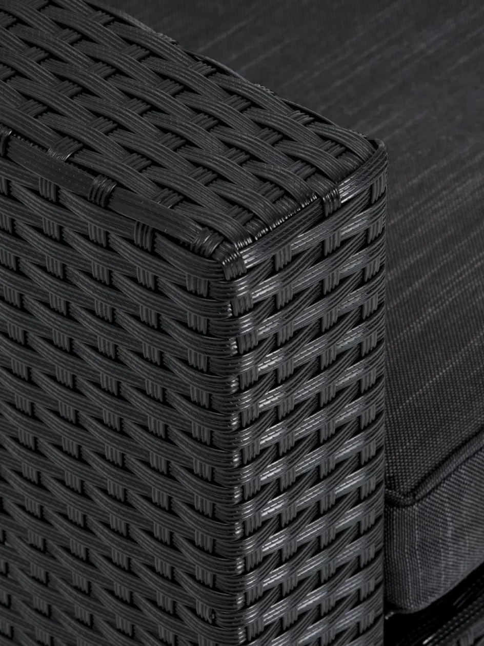 Fauteuil lounge en acier et polyrotin. Incl. coussins haut de gamme avec housse résistante à structure tissée. l72 x H73 x P68 cm