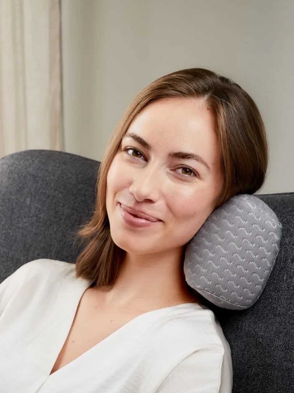 Grâce à la sangle élastique à l’arrière de l’oreiller, vous pouvez facilement le fixer solidement à un appui-tête, par exemple dans la voiture ou sur votre fauteuil à la maison.