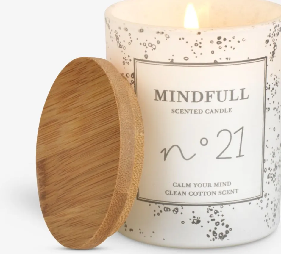 Bougie blanche senteur coton propre et apaisant. La bougie présente un design minimaliste avec un couvercle marron, ce qui en fait un accessoire élégant dans n’importe quelle pièce. Idéale pour créer une atmosphère calme, elle a une durée d’éclairage de 25 heures. Ø7 x H9 cm