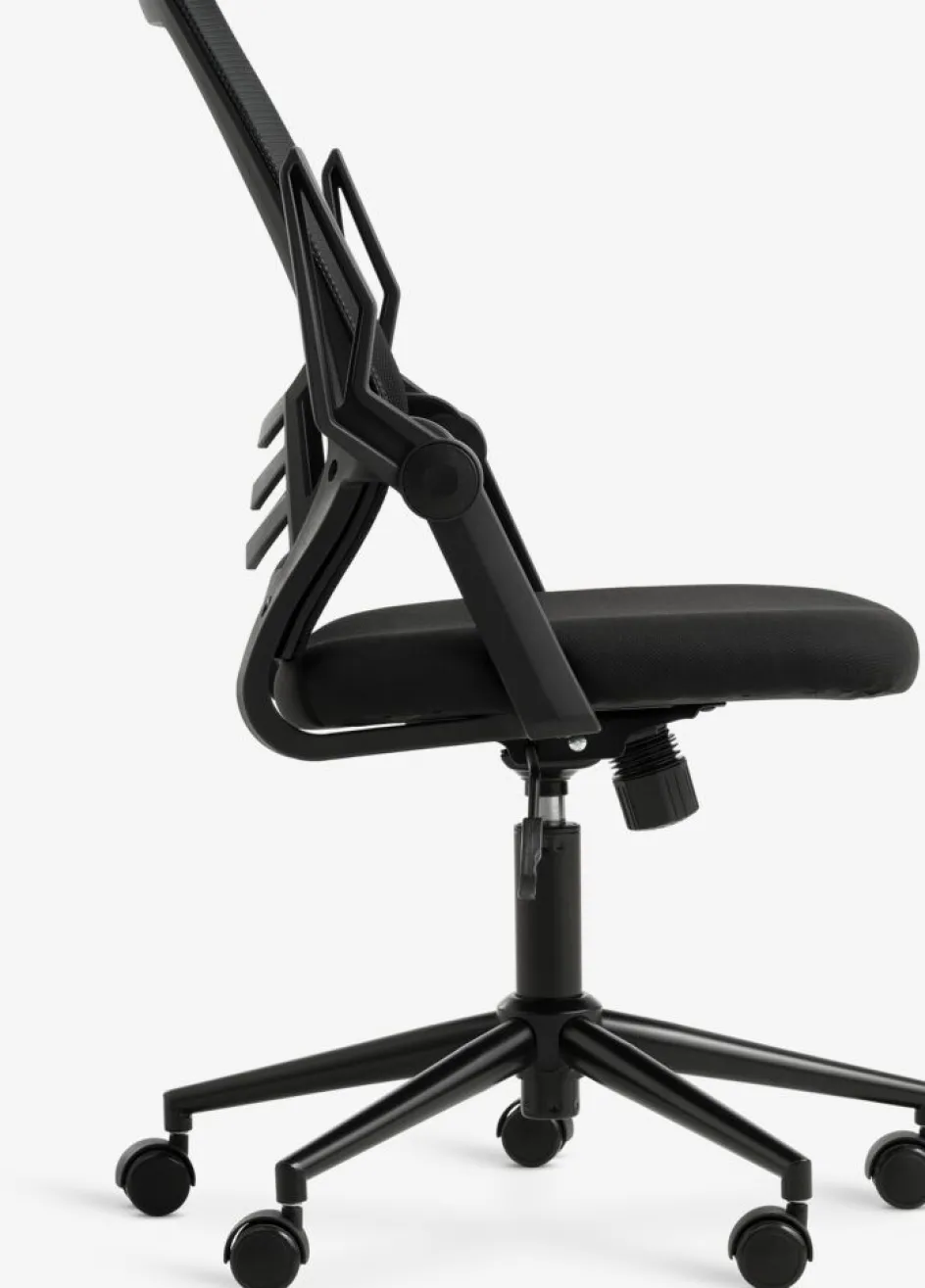 La chaise de bureau ASPERUP est conçue afin que vous puissiez rester concentré tout au long de votre journée de travail. Une chaise de bureau est une chaise pratique et confortable, idéale pour le travail occasionnel au bureau ou les moments d’étude. Dotée d’accoudoirs rabattables pratiques, cette chaise vous permet de choisir entre un soutien ou plus d’espace afin que vous puissiez rester assis confortablement plus longtemps. La chaise est recouverte d’un tissu noir doux et d’une maille respirante. l59 x H95-107 x P61 cm