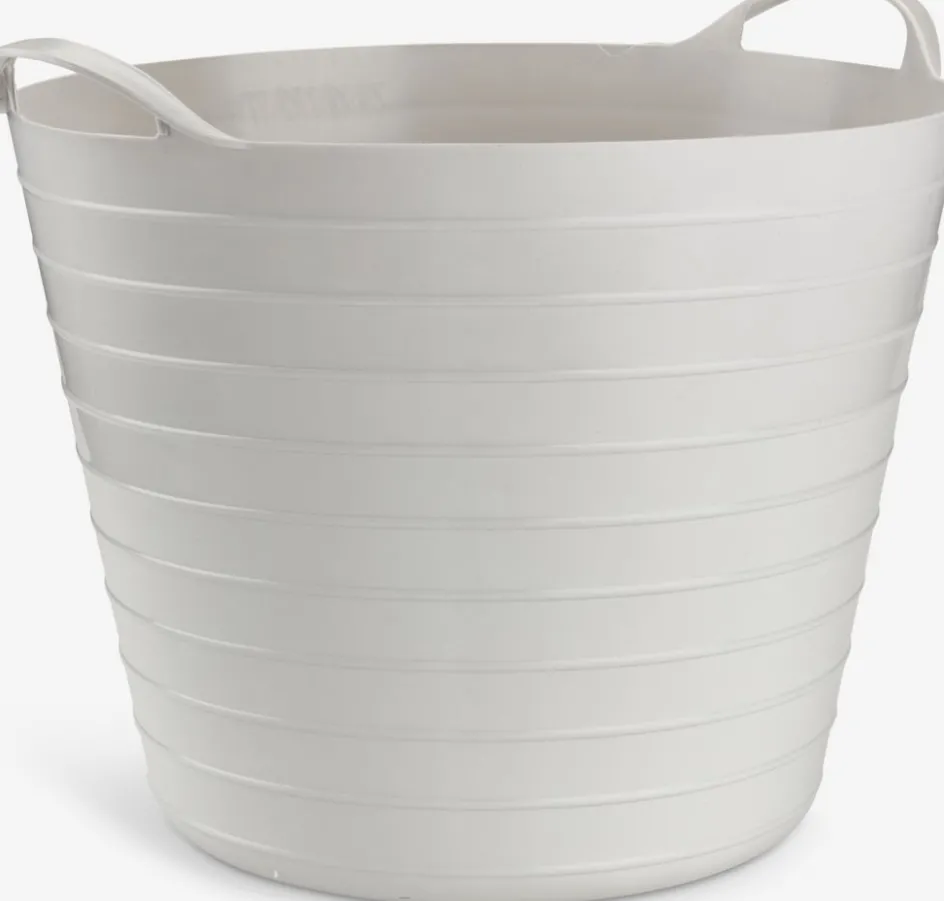 Panier de rangement en plastique gris clair d’une contenance de 25 litres. Avec des poignées pratiques qui facilitent le transport et le déplacement. Il est adapté pour le rangement de divers articles et peut également être utilisé comme panier à linge. Charge max. 20 kg. Ø38 x H34 cm