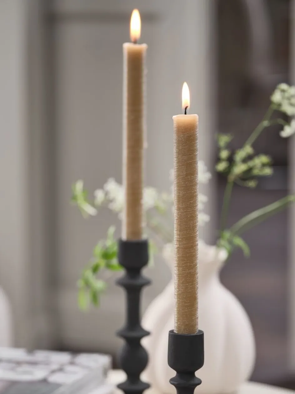 Bougies pour chandelier coloris amande au design rustique. Idéales pour des dîners intimistes ou une soirée cosy en intérieur. Lot de 2. Ø2,2 x H22 cm