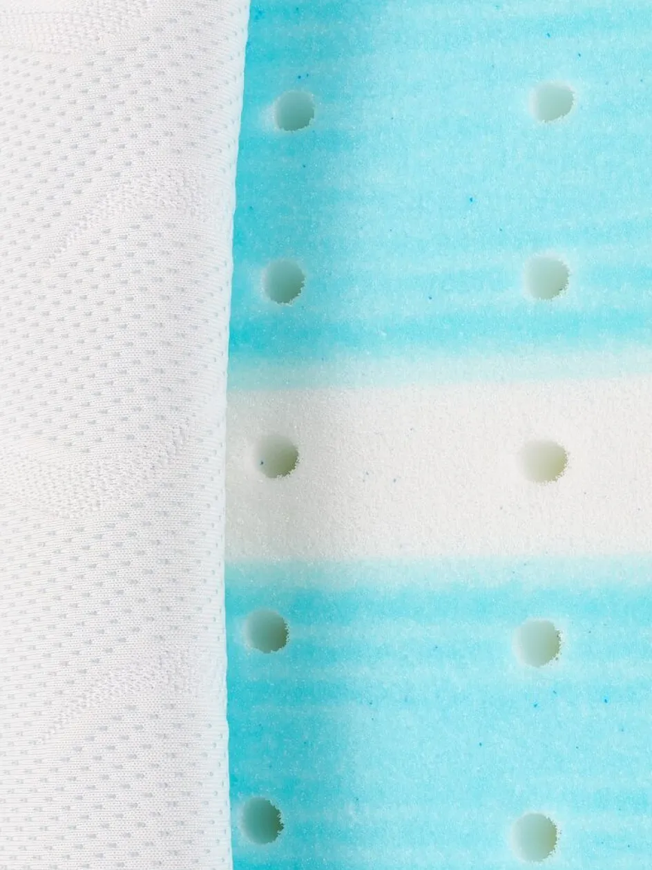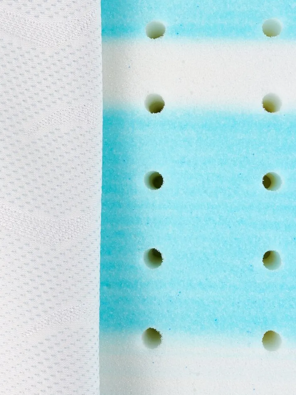 | Composition du noyau | 35 mm mousse à mémoire de forme AIR avec gel rafraîchissant 38 kg/m³ + 45 mm mousse polyéther 30 kg/m³ |