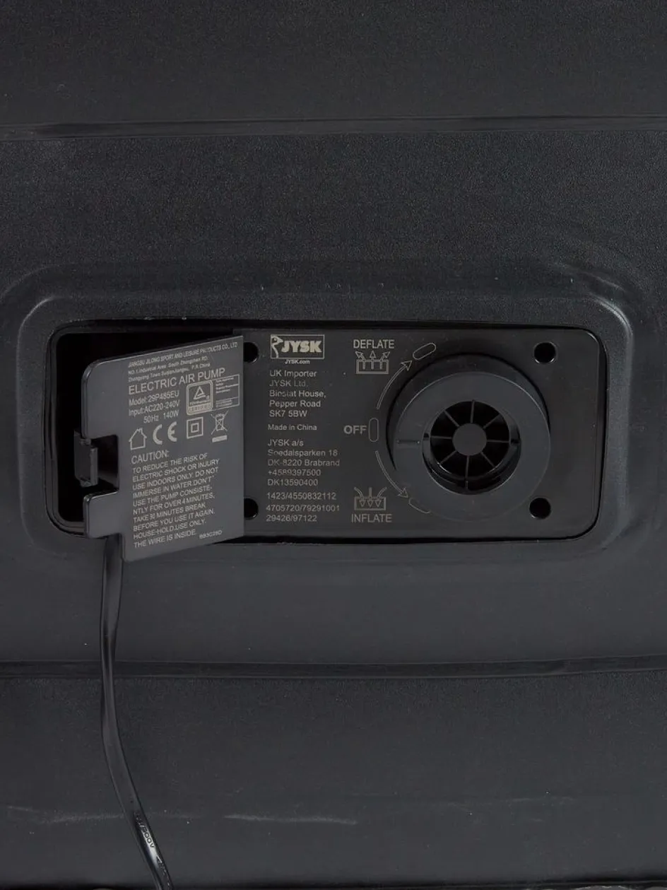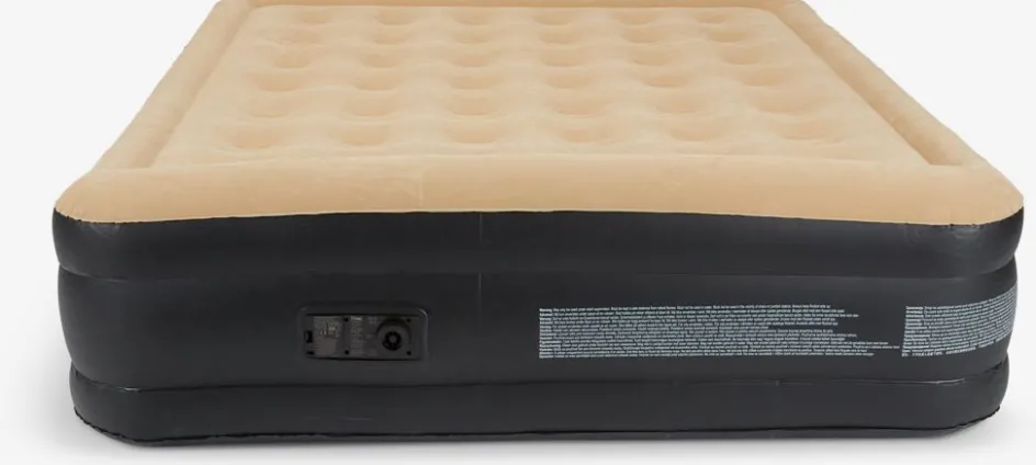 Matelas gonflable en PVC avec partie supérieure en velours doux. Avec oreiller et pompe électrique intégrés. Incl. sac de rangement. l156 x L201 x H46 cm