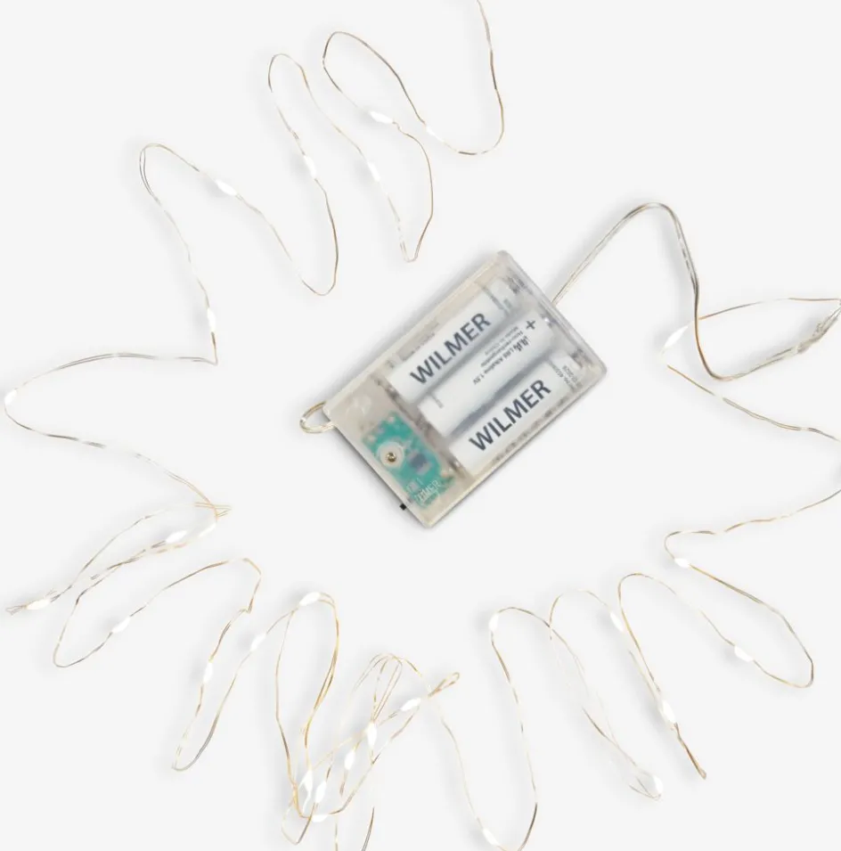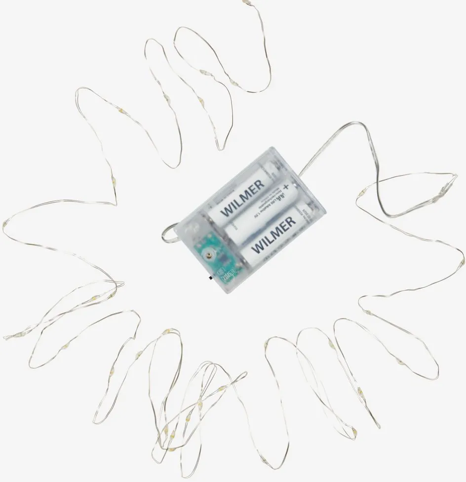 Guirlande lumineuse pour usage intérieur. 30 LED. Éclairage blanc chaud. Avec minuterie. Excl. piles. 2,9m d’ampoules + 0,3m de fil