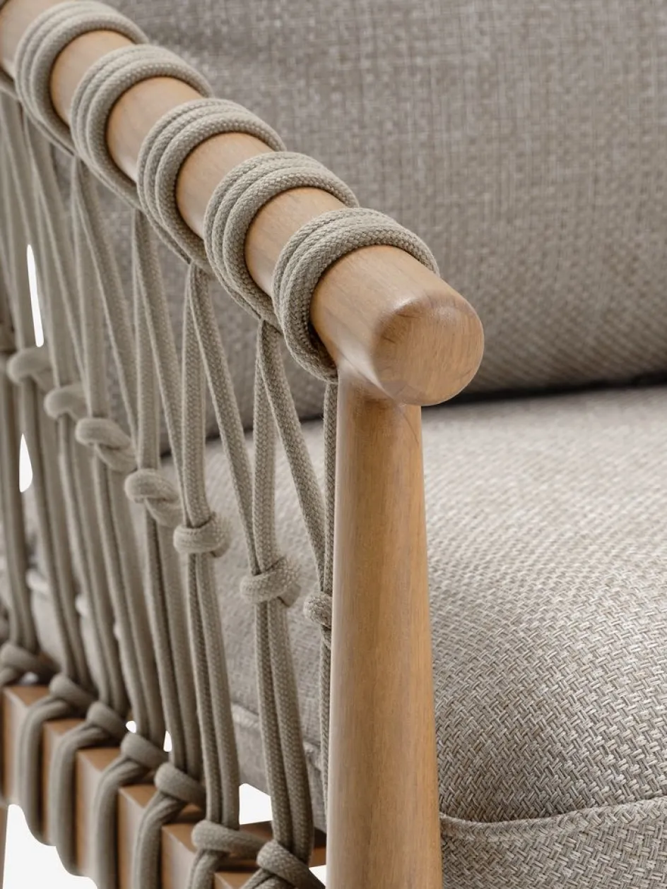 Des cordes en polyester résistantes sont tissées autour du dossier et des accoudoirs du canapé et des fauteuils lounges. Cela ajoute une touche d’élégance au mobilier lounge tout en permettant à l’air de circuler. La corde en polyester résiste à l’humidité et présente une bonne résistance et une bonne tenue des couleurs.