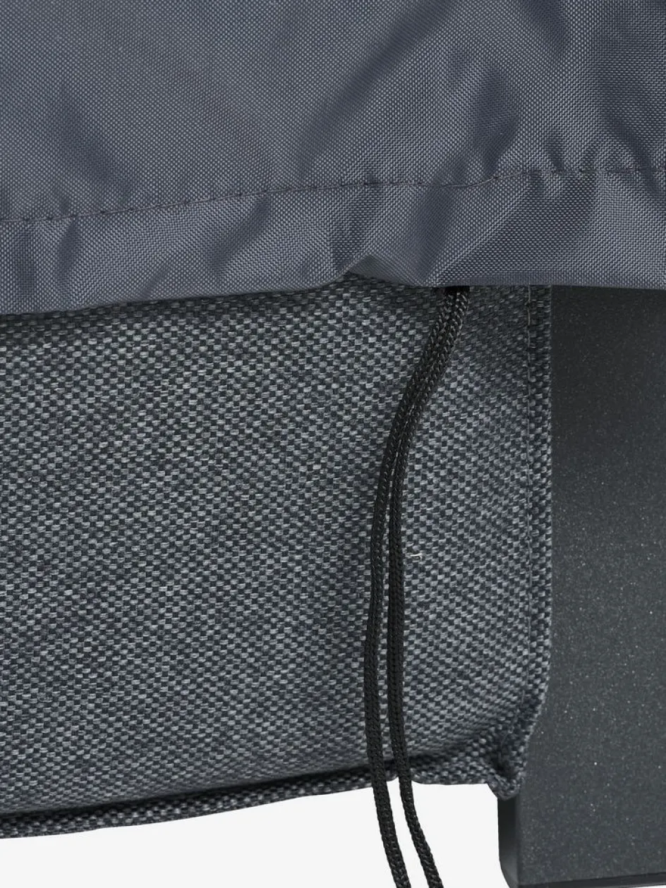 Housse imperméable pour meubles de jardin en polyester gris foncé. Cette housse résistante au gel protège vos meubles d’extérieur des intempéries. Idéale pour garder votre salon de jardin propre et sec tout au long de l’année. l89 x L107 x H70 cm