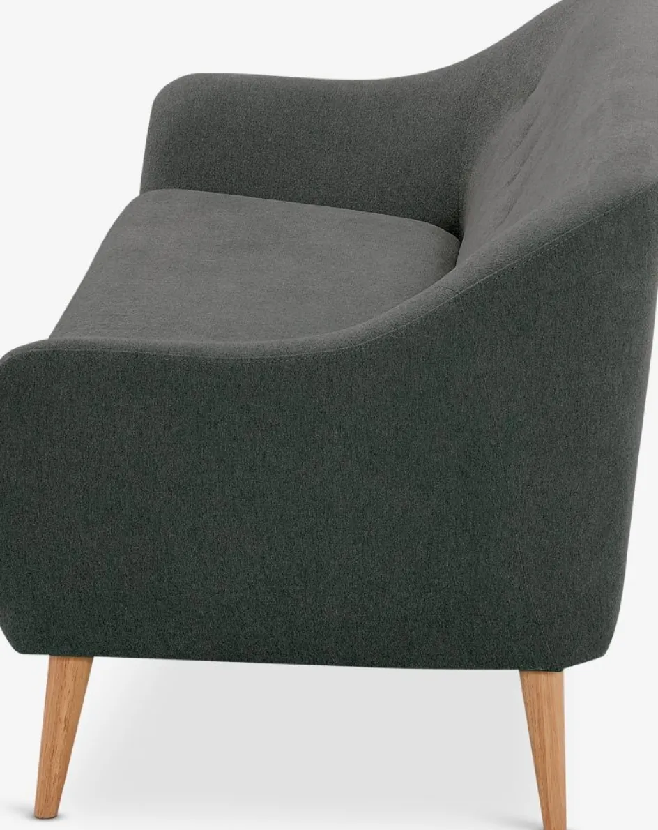 En contreplaqué, eucalyptus massif. Revêtement : polyester. Garnissage : mousse polyéther. Pieds : bois de caoutchouc massif. 2,5 places. l170 x H82 x P81 cm