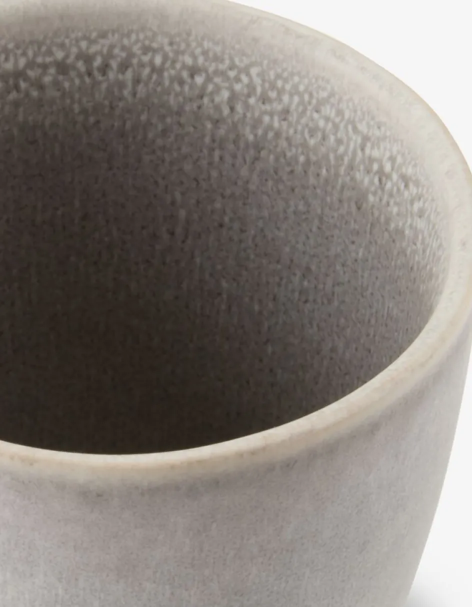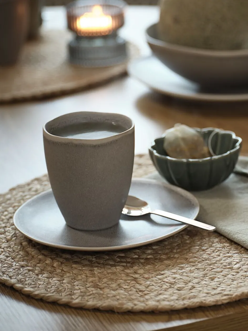 Tasse en grès avec une finition grise moderne. L’émail réactif donne à chaque produit un aspect différent. La tasse est idéale pour déguster du café ou du thé, et elle est résistante au lave-vaisselle. 33 cl. Ø9 x H10 cm