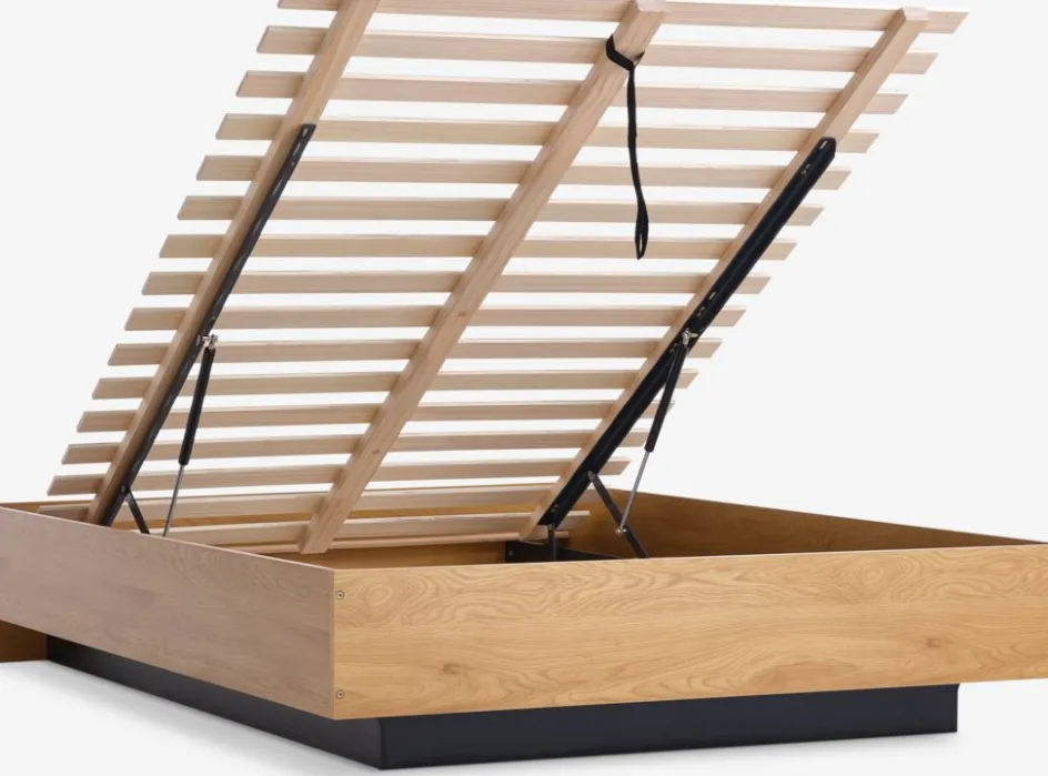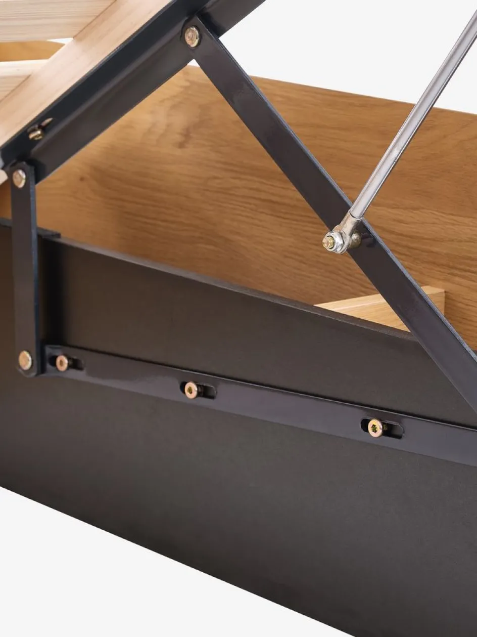 Placage décoratif. Avec espace de rangement et sommier à vérin. Pour matelas à ressorts et en mousse 140×190 cm. Incl. sommier à lattes. Excl. matelas. l144 x L194 x H35 cm