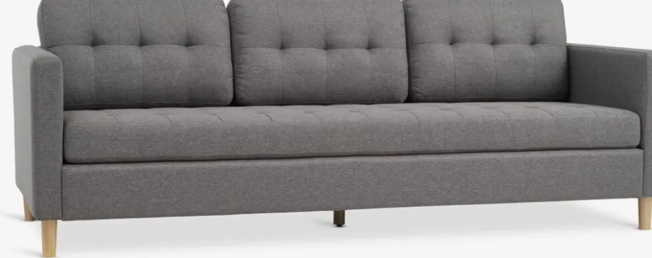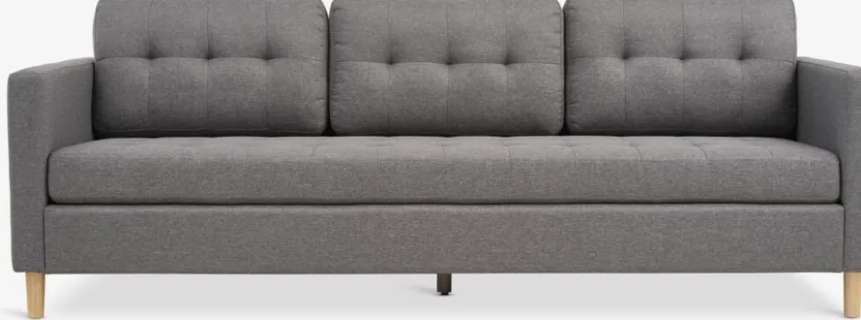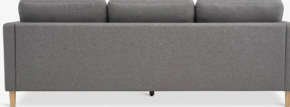 Canapé 3 places en tissu. Coussin d’assise avec ressorts ensachés et rembourrage en mousse. Coussin de dossier en mousse. Pieds en bois massif. l216 x H78 x P84 cm