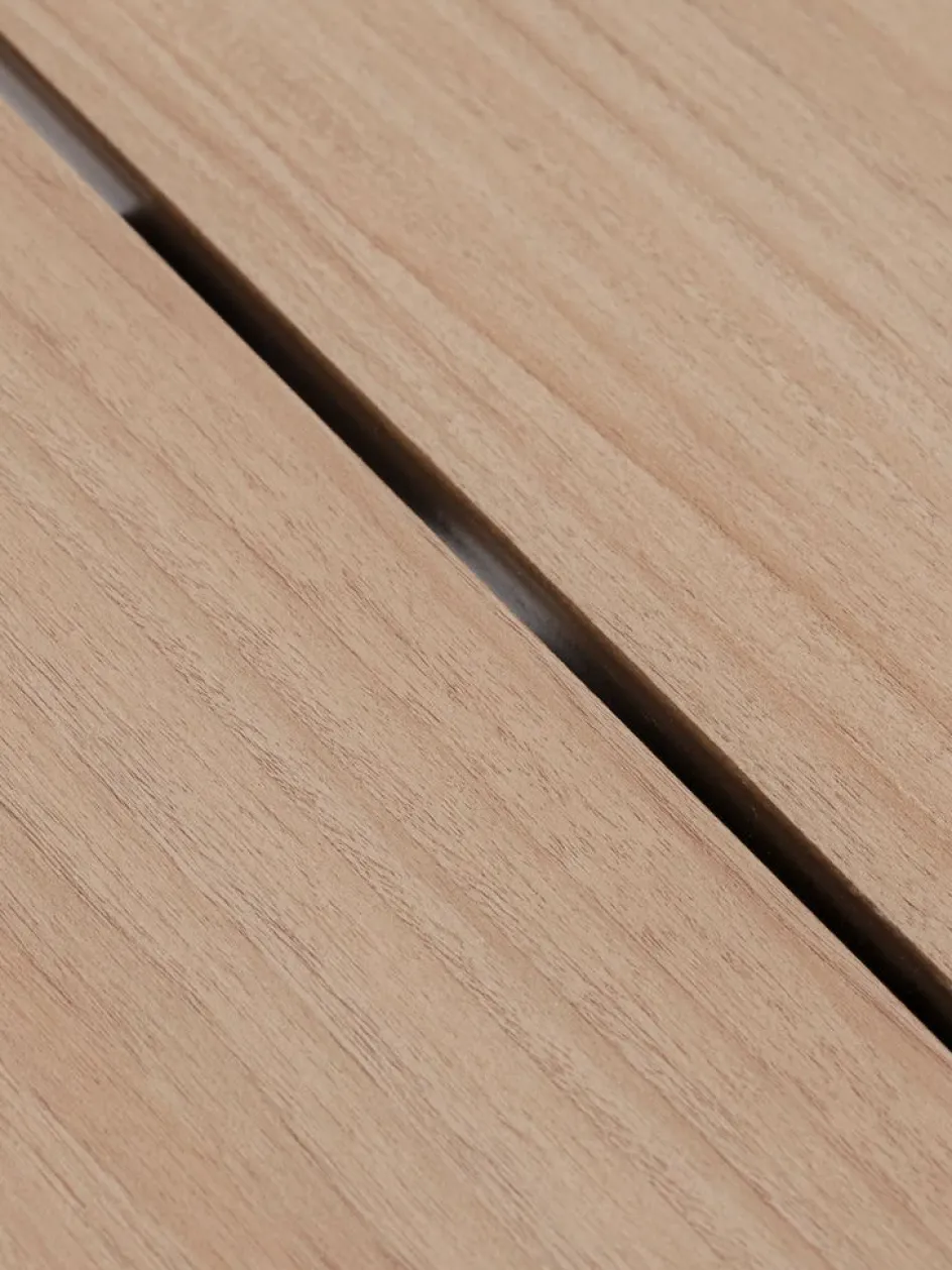Ensemble de meubles de jardin 4 personnes. Table : aluminium et imitation bois. l100 x L220 x H74 cm. Chaise : acier et polyrotin.