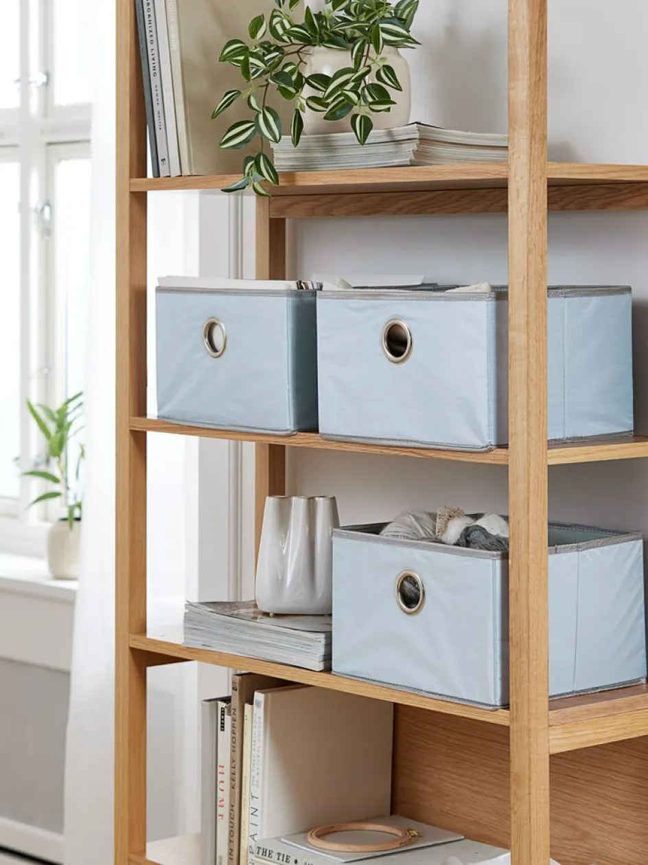 Panier gris clair grand et stable, idéal pour ranger toutes sortes de choses à la maison ou au bureau. Il s’adapte bien sur les étagères ou dans les armoires et dispose d’une poignée en acier pour un accès facile. l32 x L27 x H20 cm