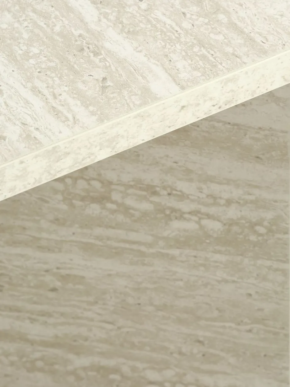 En panneau de particules, placage décoratif papier. Pieds : MDF, placage décoratif papier. l60 x L60 x H35 cm
