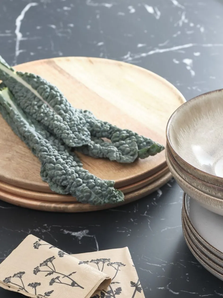 Plateau décoratif naturel en bois de manguier. Le plateau présente un design lisse et rond, idéal pour présenter des bougies, des décorations ou être utilisé comme espace de rangement élégant pour les clés et les petits objets. Chaque plateau a un aspect unique en raison des variations naturelles du bois. Ø30 cm