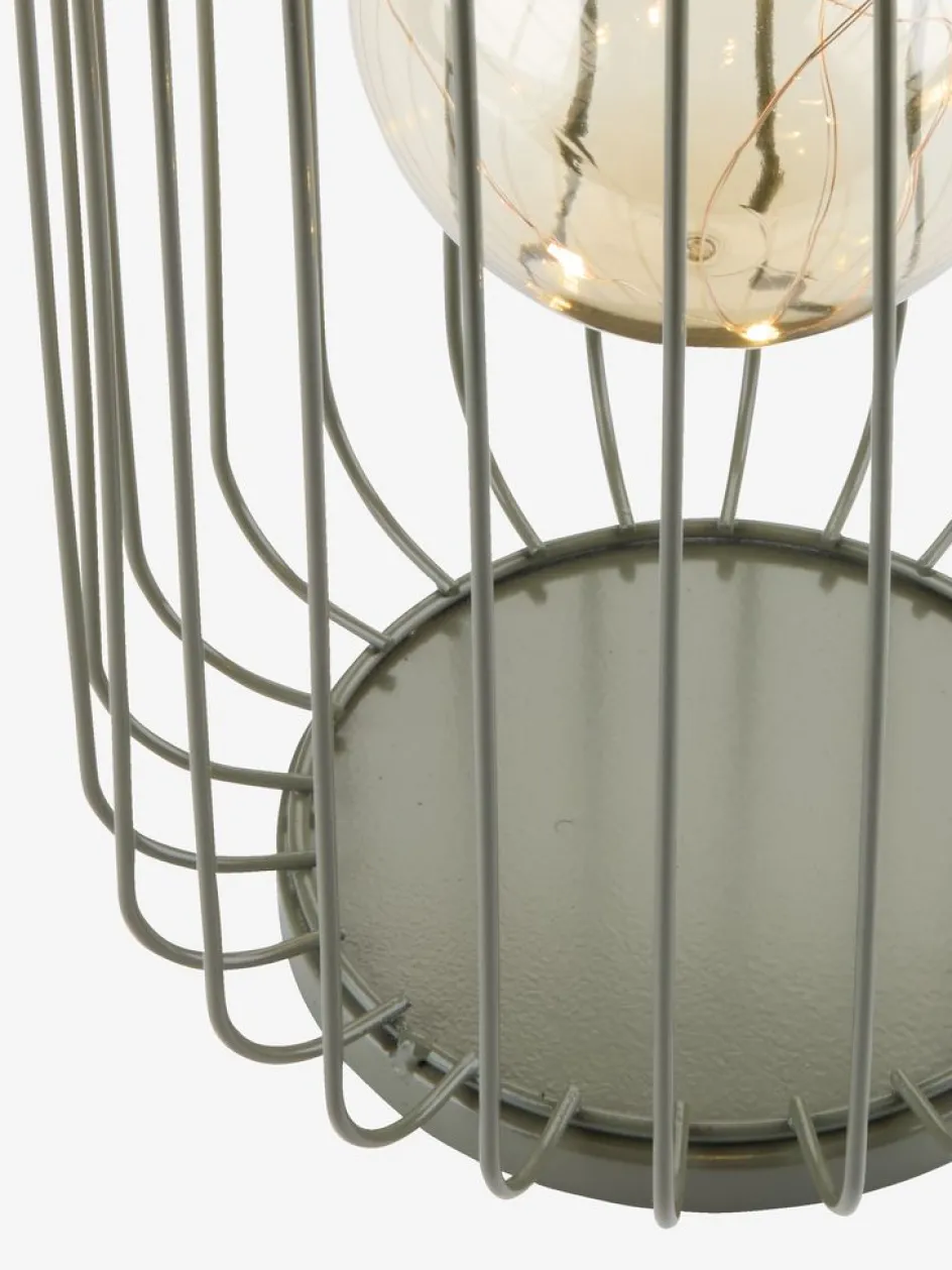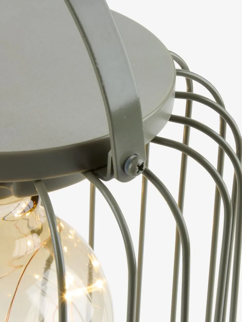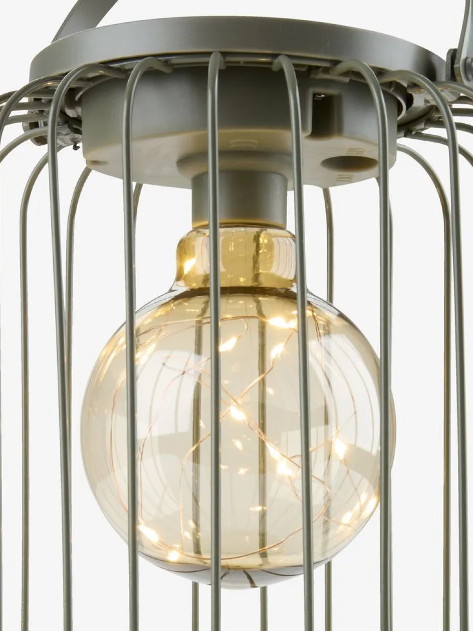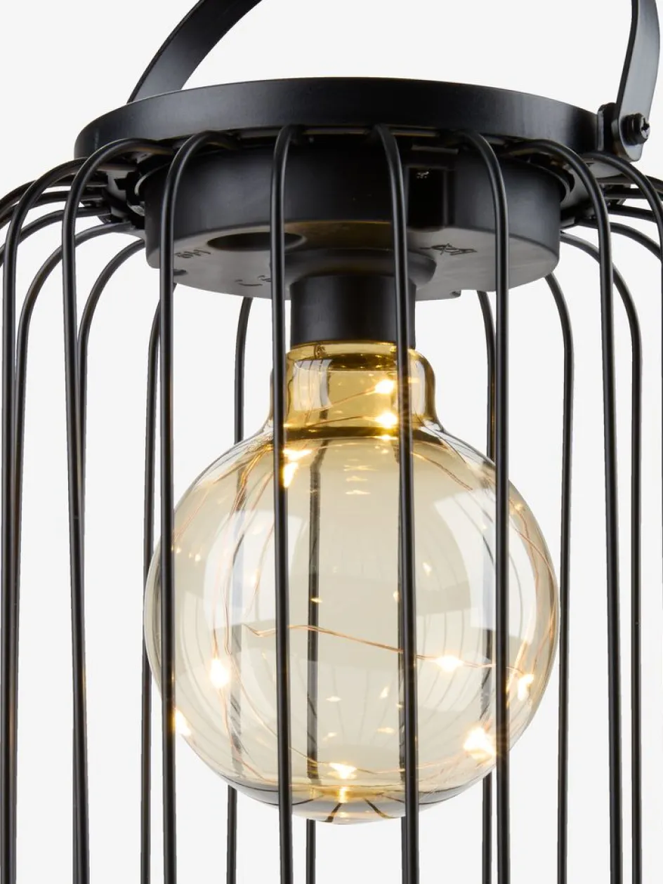 Lampe à piles d’extérieur en acier avec un cadre en fil d’acier ouvert qui donne un look industriel mais élégant. À l’intérieur de la lampe, une ampoule LED décorative émet une lueur chaleureuse, et elle dispose d’une fonction minuterie avec des intervalles de 6/18 heures. La lampe a une poignée en acier assortie, ce qui la rend facile à transporter et à déplacer. Disponible en plusieurs couleurs. Nécessite 2 piles AA (non incluses). Ø18 x H28 cm