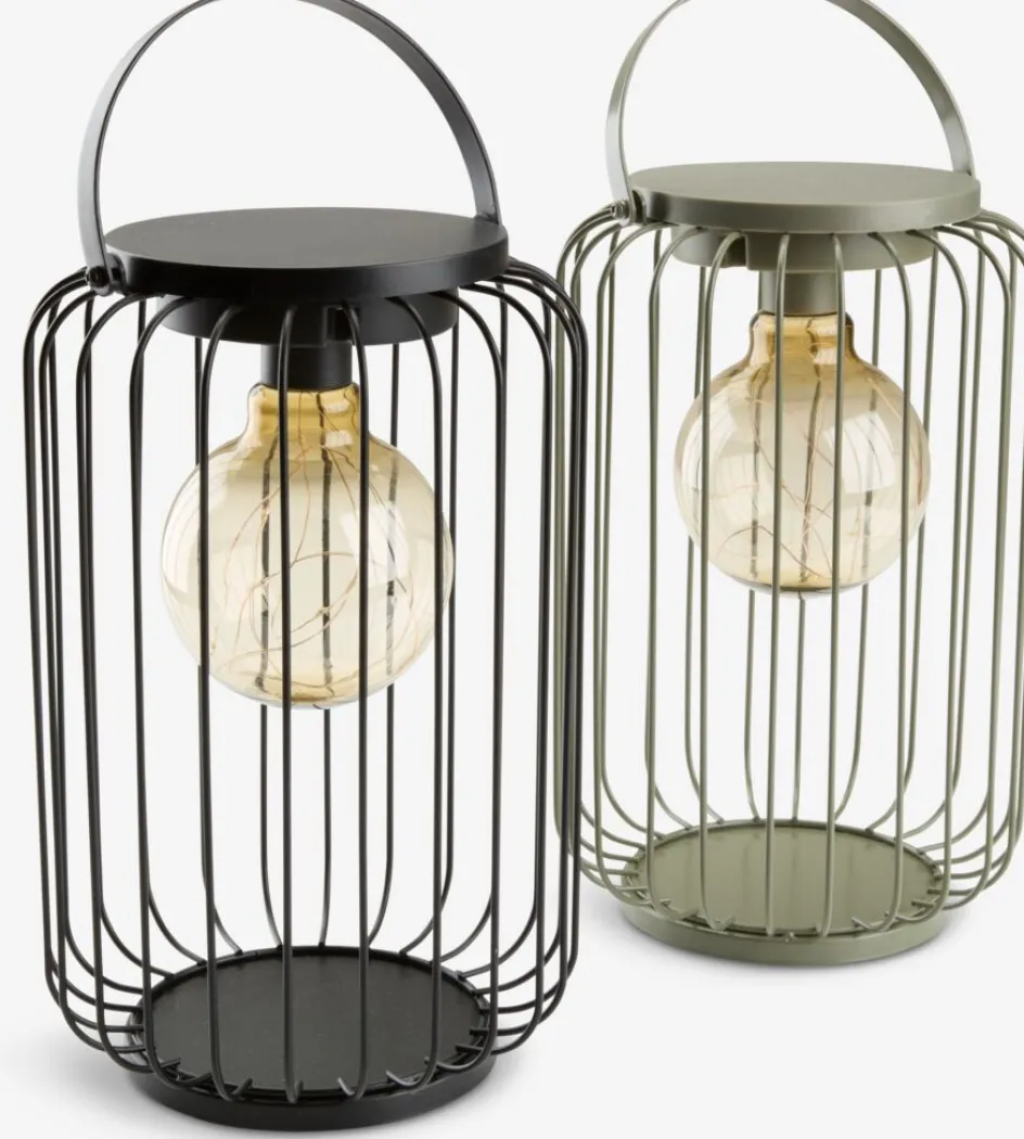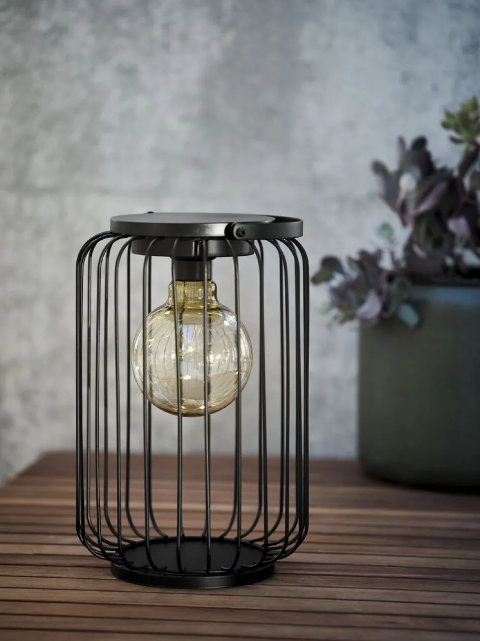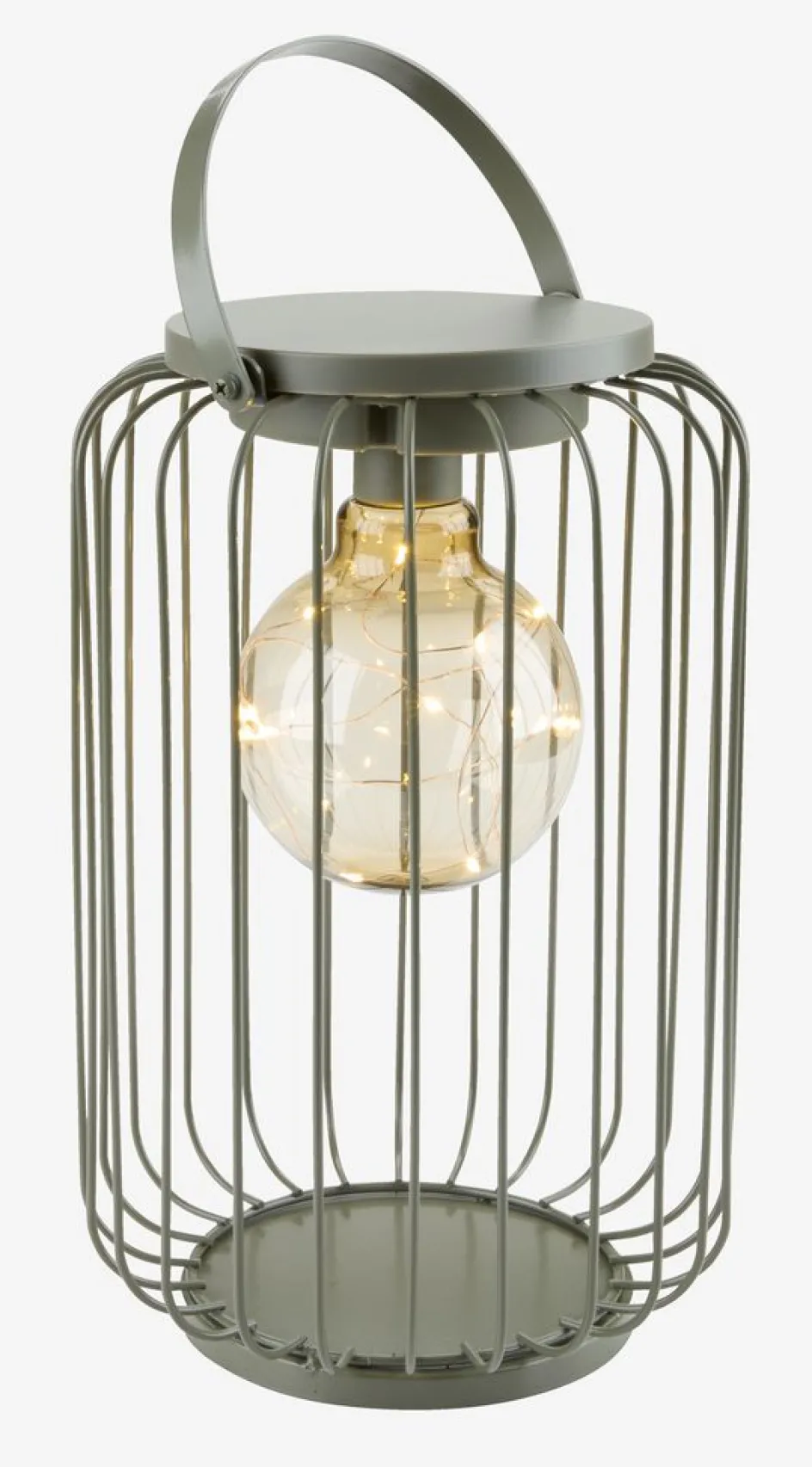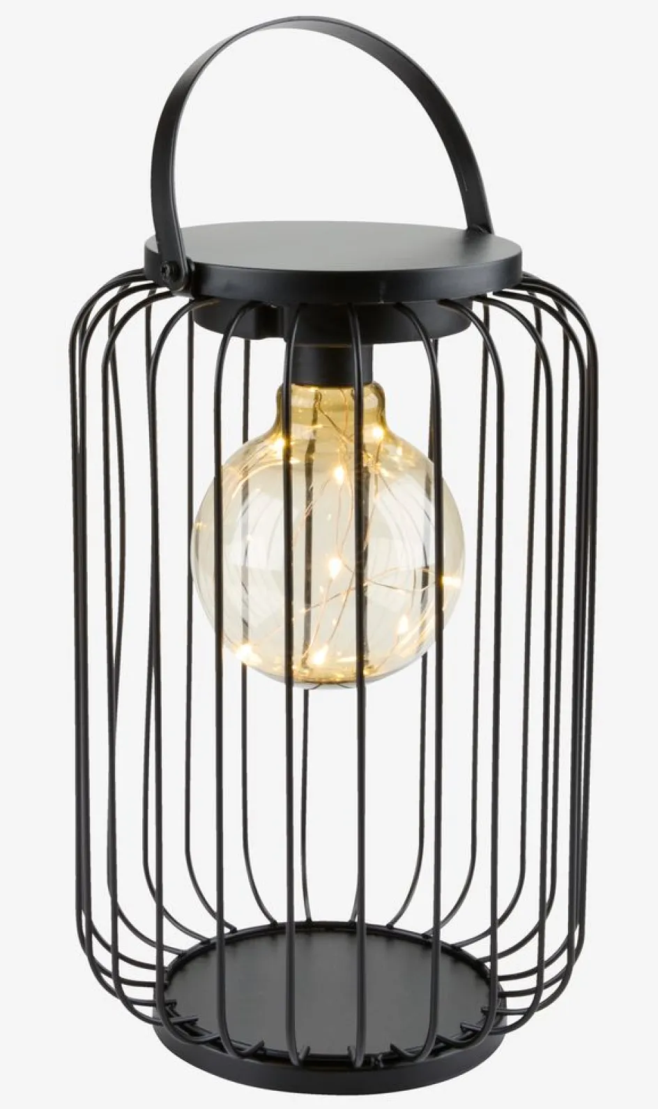 Lampe à piles d’extérieur en acier avec un cadre en fil d’acier ouvert qui donne un look industriel mais élégant. À l’intérieur de la lampe, une ampoule LED décorative émet une lueur chaleureuse, et elle dispose d’une fonction minuterie avec des intervalles de 6/18 heures. La lampe a une poignée en acier assortie, ce qui la rend facile à transporter et à déplacer. Disponible en plusieurs couleurs. Nécessite 2 piles AA (non incluses). Ø18 x H28 cm