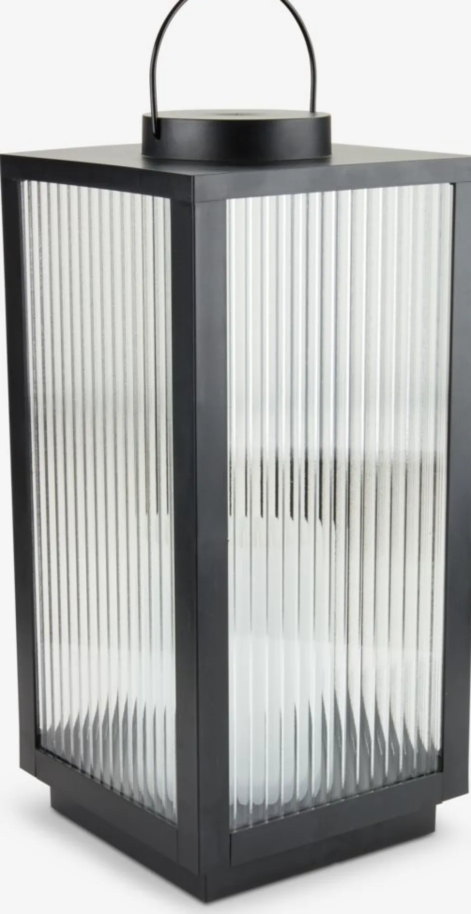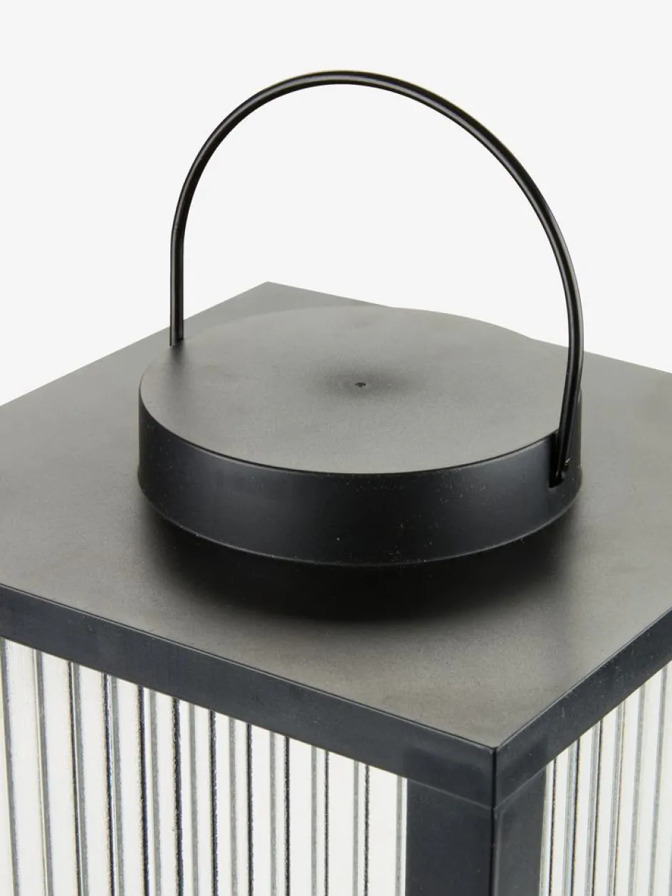 Lanterne noire au design classique en plastique et verre. Avec 3 bougies LED et fonction minuterie avec intervalles de 16/8 heures. Idéale pour créer un éclairage extérieur chaleureux. Nécessite 3 piles AA (non incluses). l22 x L22 x H48 cm