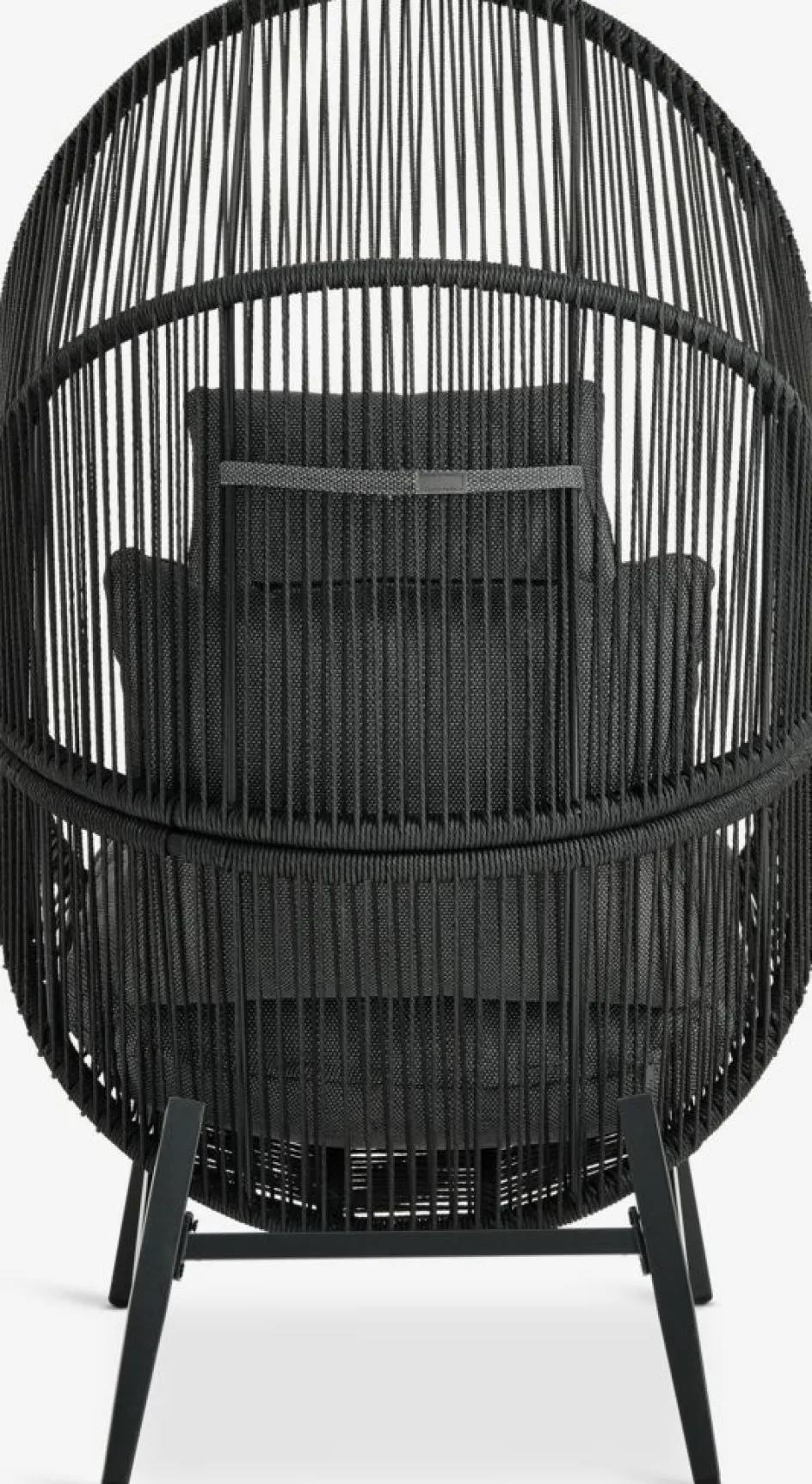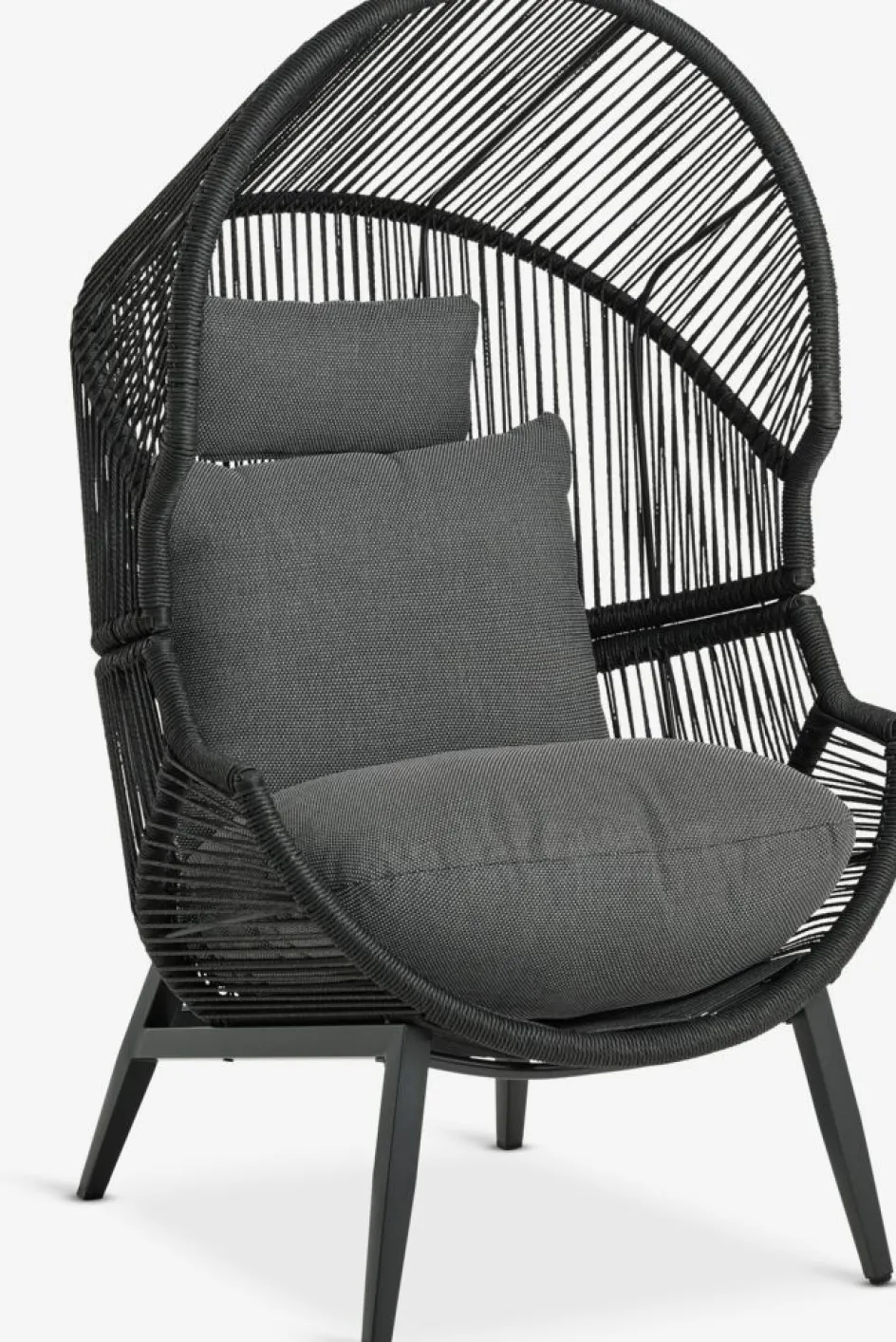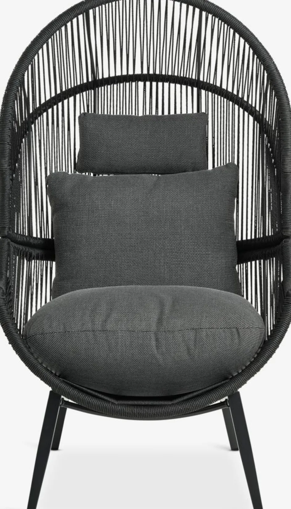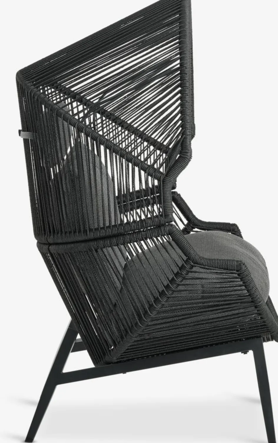 Fauteuil lounge en acier et polyrotin. Incl. coussins haut de gamme avec housse résistante tissée. l85 x H143 x P88