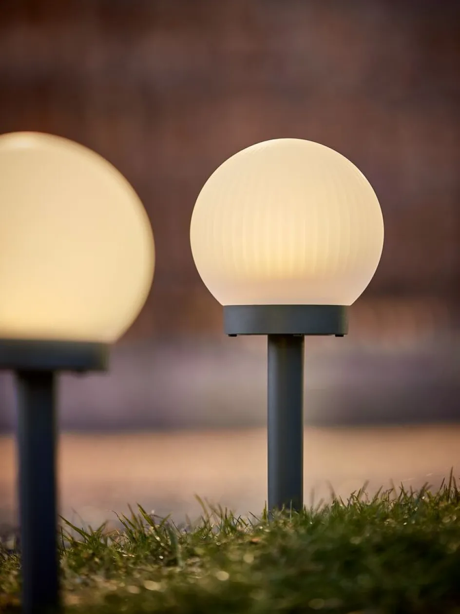 Lampe solaire au design blanc et sphérique qui projette une lumière douce et d’ambiance. Comme elle est alimentée par énergie solaire, elle est facile à placer n’importe où dans le jardin à l’aide d’un piquet. La lampe offre jusqu’à 6 heures de lumière et sa hauteur est réglable. Ø13 x H27/37 cm