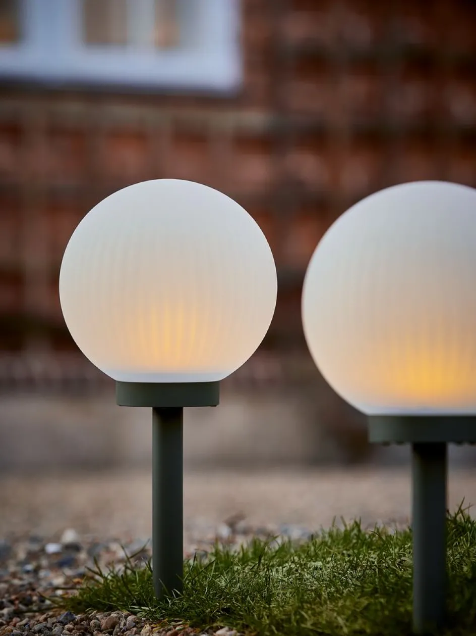 Lampe solaire au design blanc en forme de globe qui projette une lumière ambiante douce. Comme elle est alimentée à l’énergie solaire, elle est facile à placer n’importe où dans le jardin à l’aide d’un piquet de sol. La lampe fournit jusqu’à 6 heures de lumière après la tombée de la nuit et sa hauteur est réglable. Ø18 x H33/46 cm