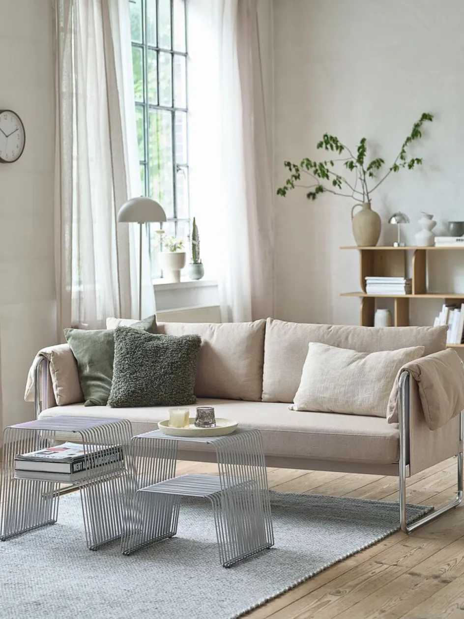 Canapé 3 places en tissu. Coussin d’assise avec ressorts ensachés et rembourrage en mousse. Coussin de dossier en mousse. Incl. coussins rembourrés sur les accoudoirs. Pieds chromés. l200 x H70 x P75 cm