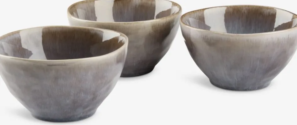Bol en faïence avec des bords irréguliers dans une finition grise brillante. Résistant au lave-vaisselle. Ø14 x H8 cm