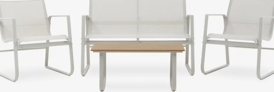 - Ensemble lounge 4 personnes: canapé lounge 2 places, 2 fauteuils lounge et 1 table