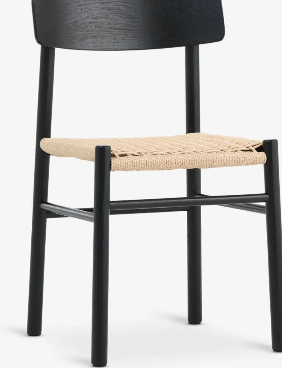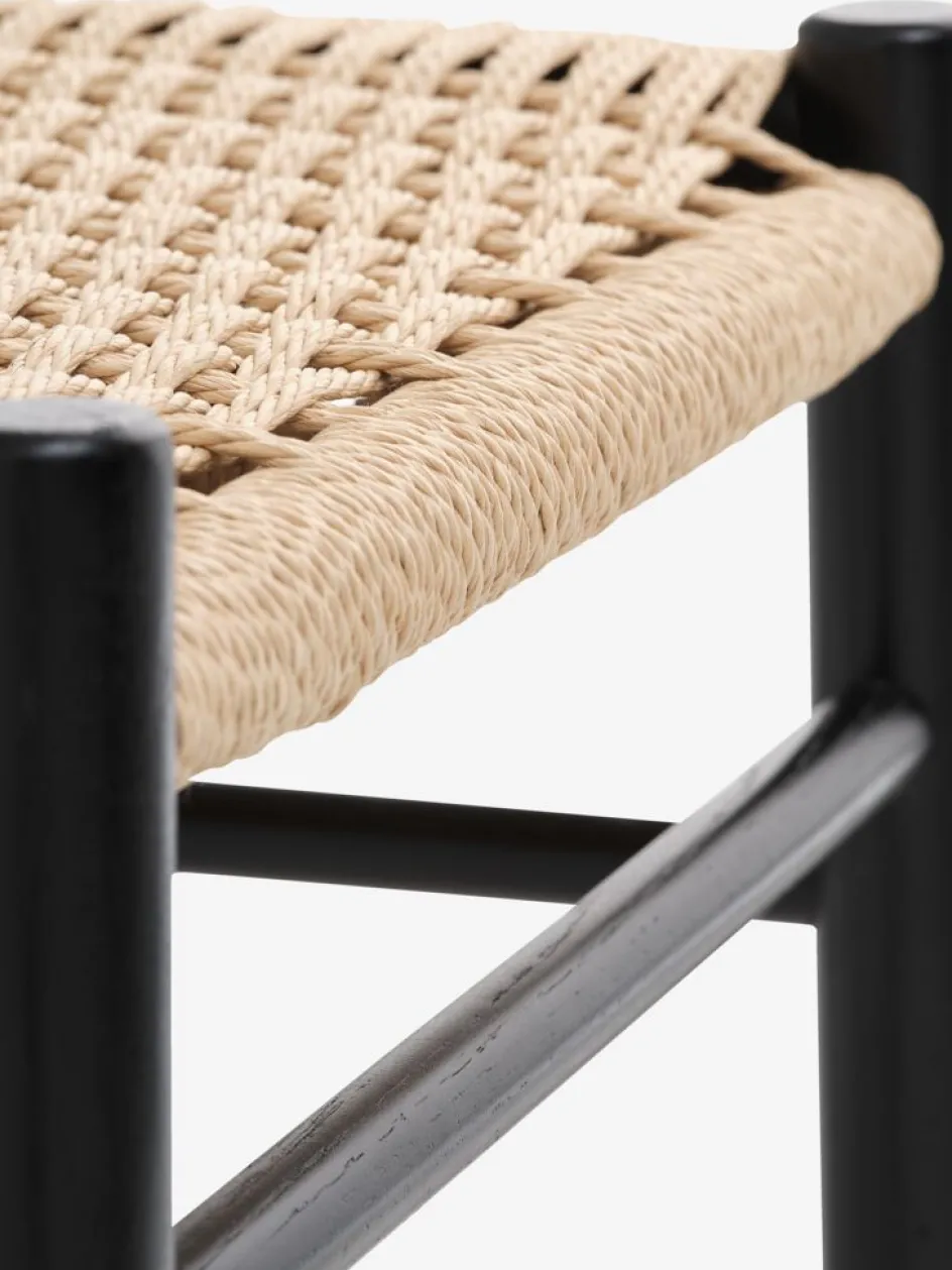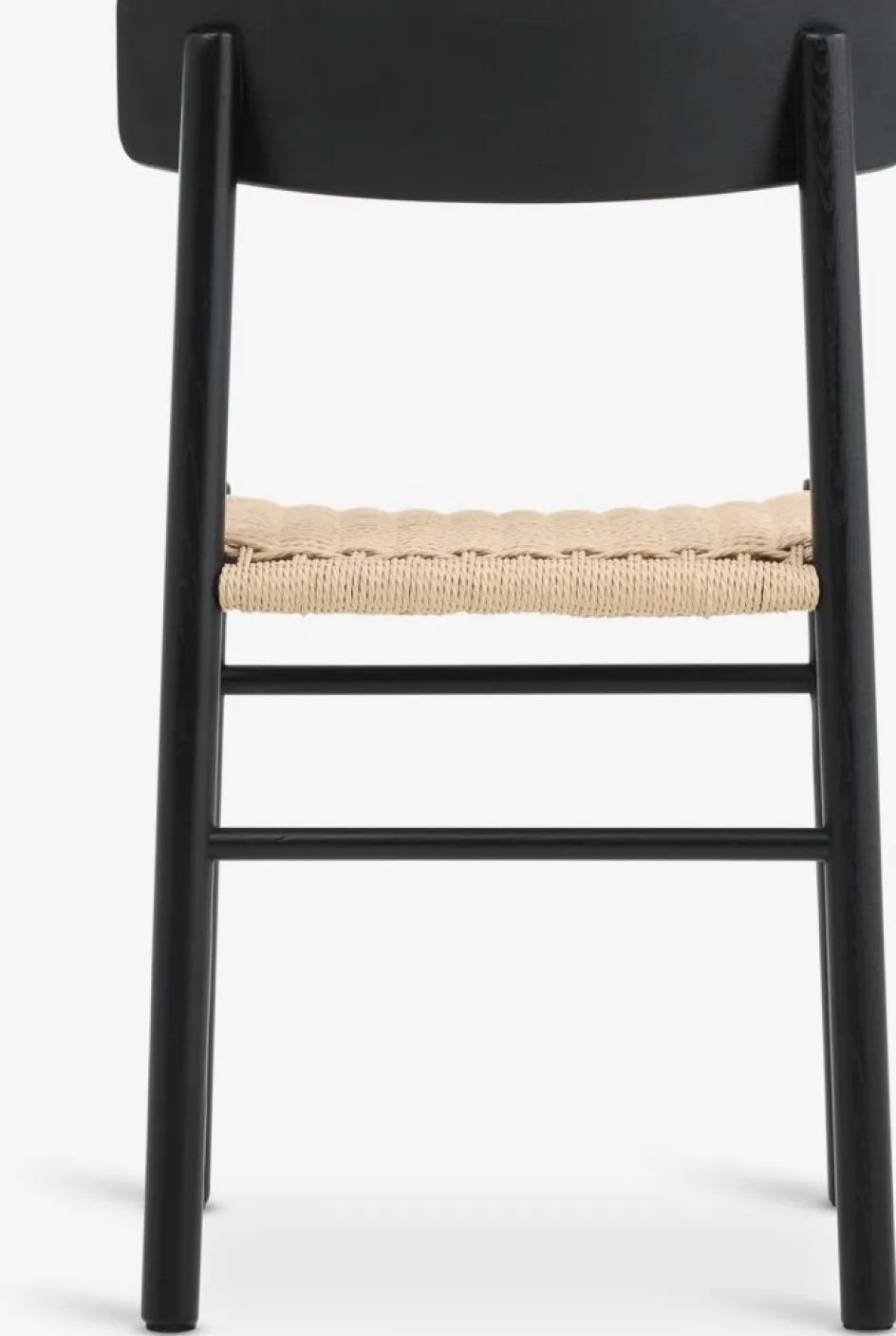 Chaise de salle à manger avec assise en corde de papier tressé et cadre en chêne massif et placage chêne.