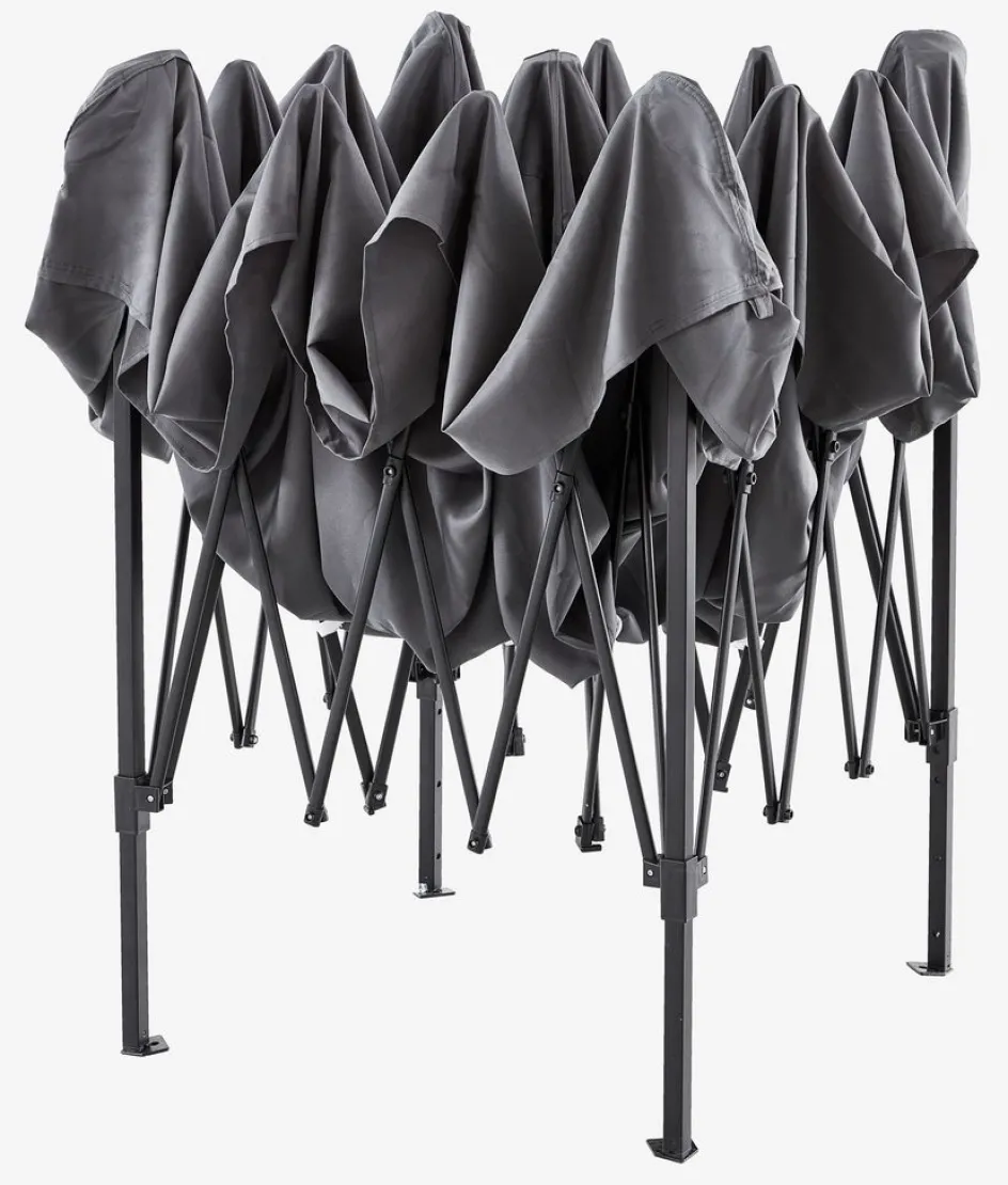 Le cadre pliable vous permet d’installer ou de démonter facilement la tonnelle sans aucun assemblage. Tirez le cadre vers l’extérieur pour le déplier et le mettre en place. Lorsque vous êtes prêt à le ranger, poussez le cadre vers l’intérieur pour le replier dans un format compact, facile à ranger et à transporter.