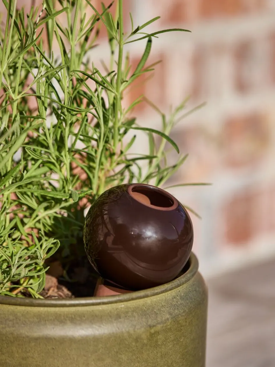 Dispositif d’auto-arrosage qui fournit aux plantes un apport régulier en eau. Le cône en terre cuite libère lentement l’eau dans la terre depuis le réservoir. Disponible en couleurs assorties et vendu à l’unité. Ø9 x H19 cm
