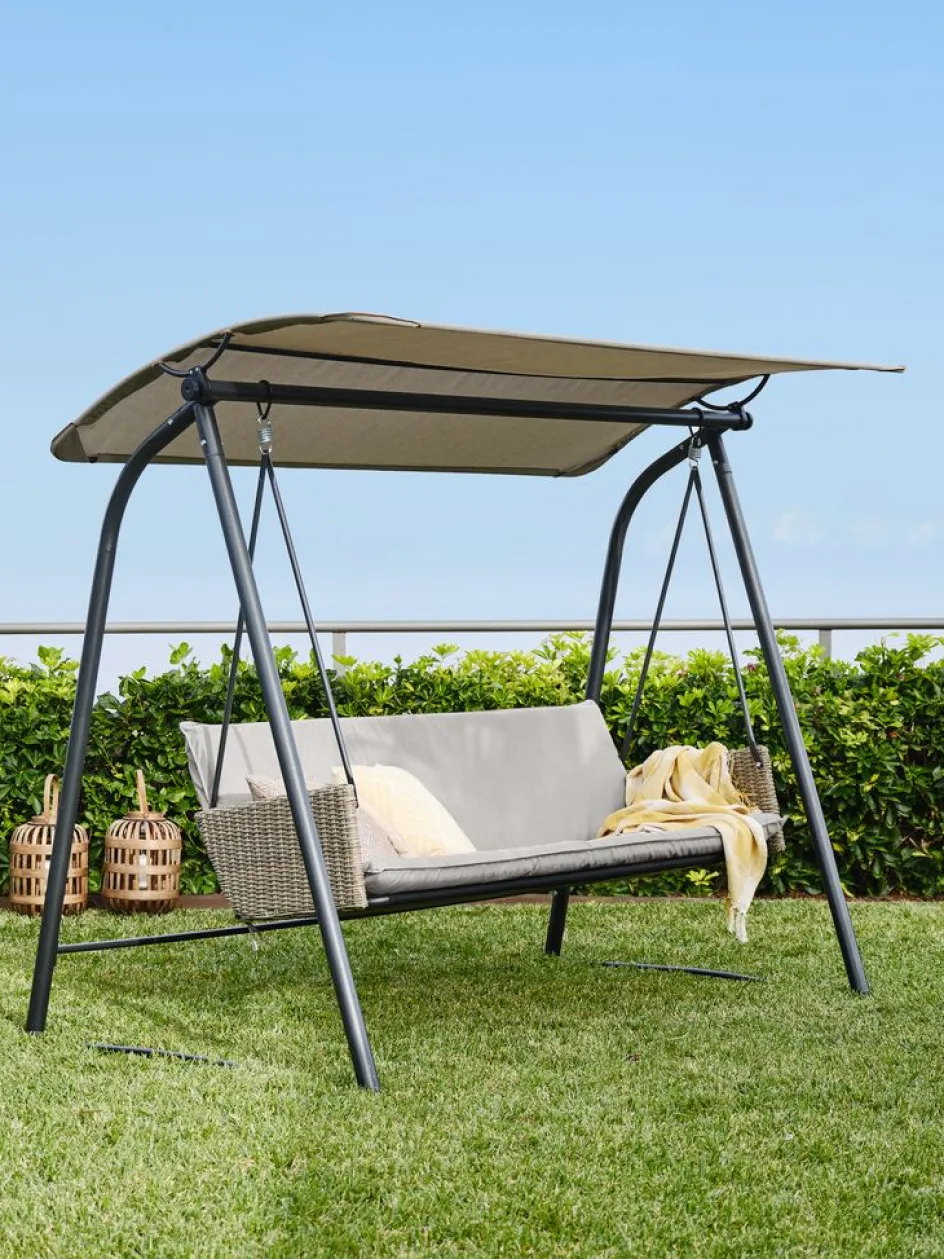 Balancelle en acier et polyrotin. Incl. coussins. l219 x H184 x P130 cm