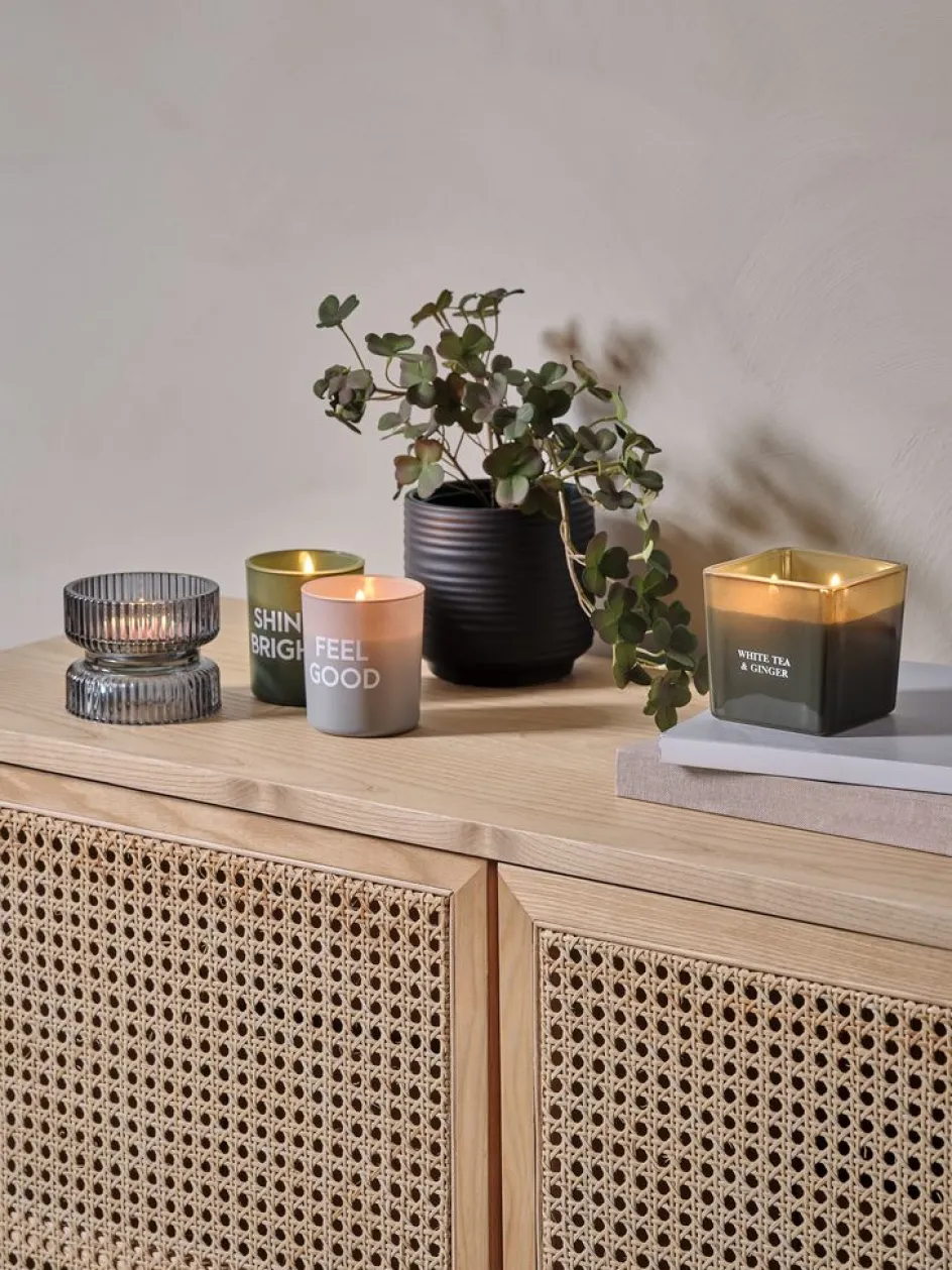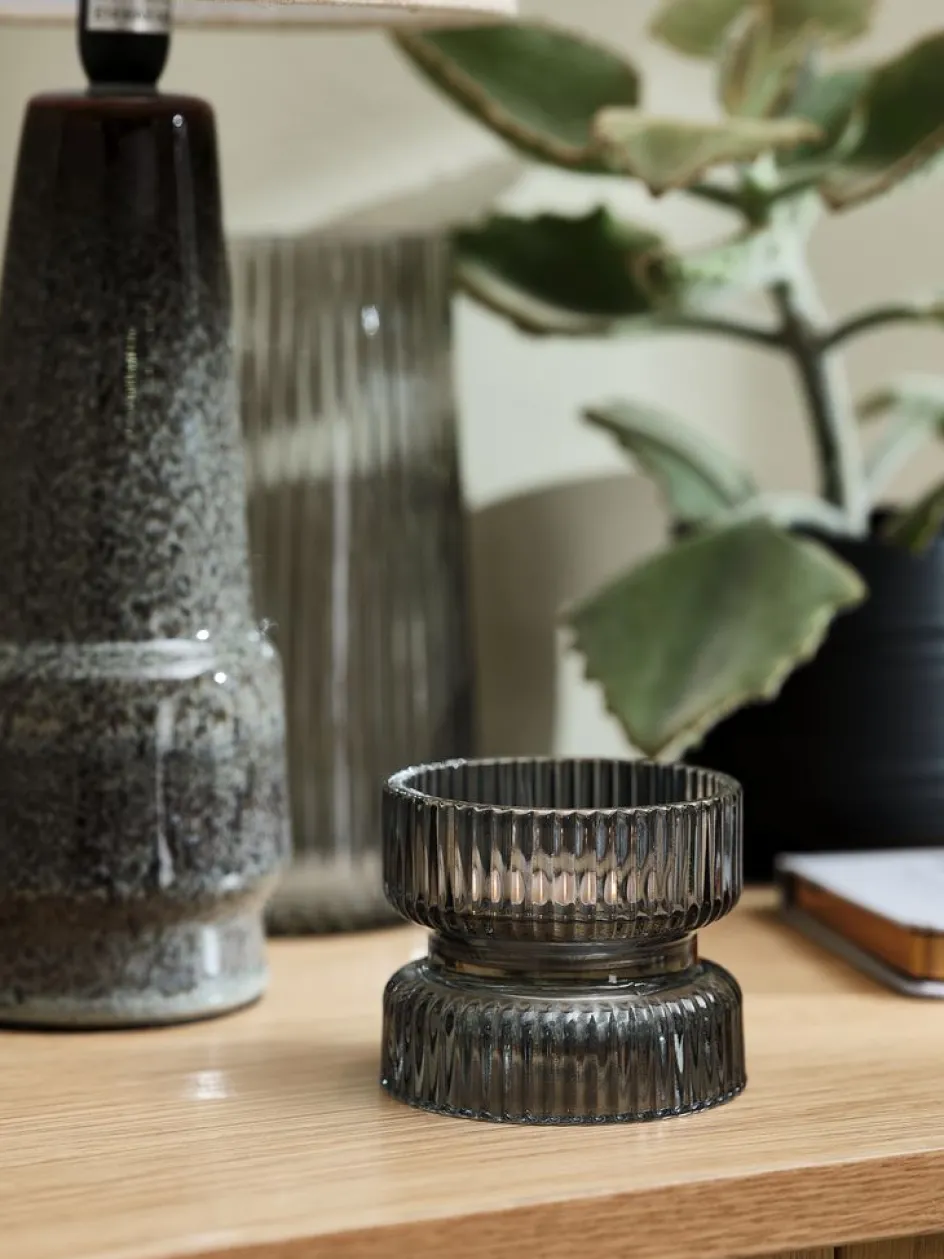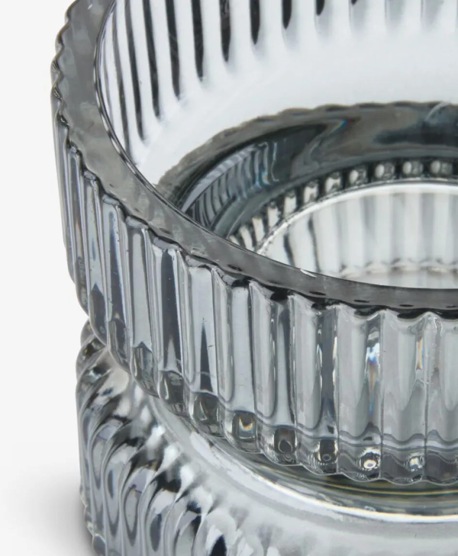 Bougeoir gris en verre, adapté aux bougies piliers. Une touche élégante pour votre intérieur. l9 x L9 x Ø9 x H7 cm