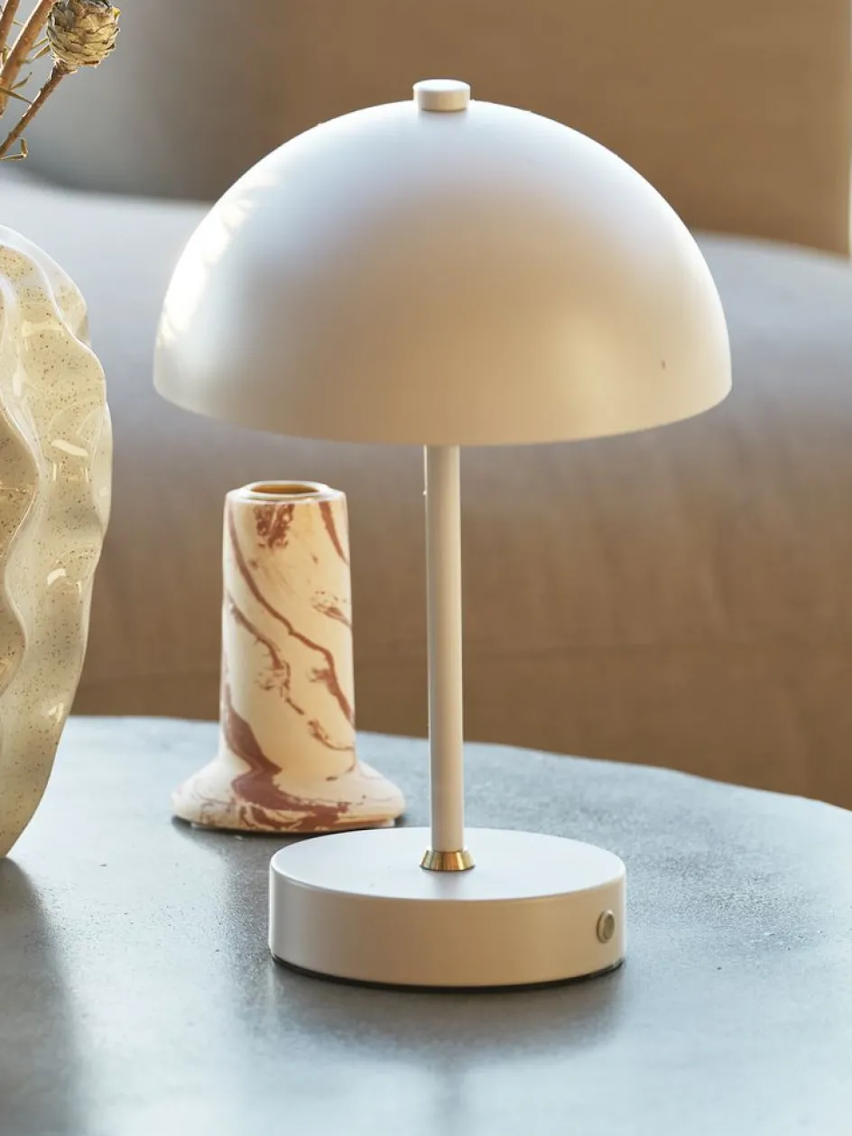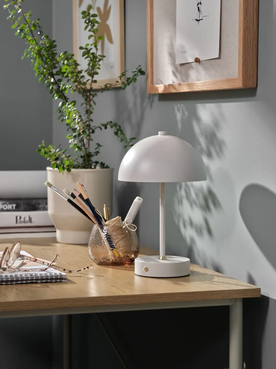 En acier et plastique. Avec commande tactile, 3 niveaux de luminosité et minuterie. Excl. piles. Ø16 x H25 cm