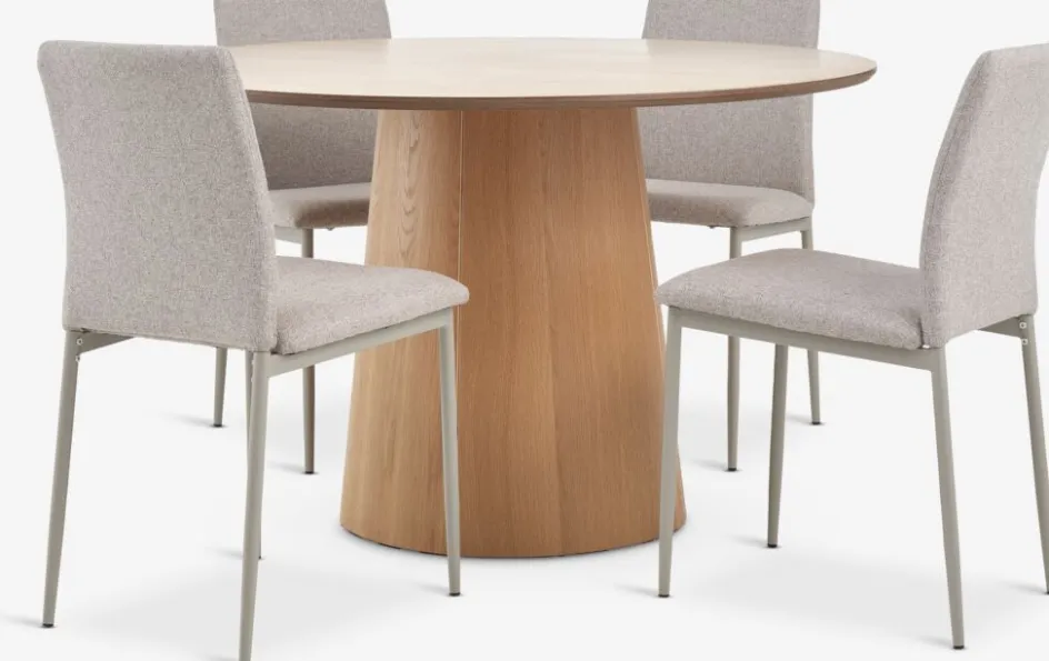 KLIPLEV + BRANDEKLIPLEV Ø120 table colo. chêne nat. + 4 BRANDE chaises beige-JYSK Sale