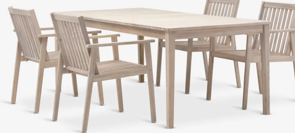 Ensembles de meubles de jardin 4 personnes. Table : bois FSC® huilé. l100 x L205 x H75 cm. Chaise : bois FSC® huilé.