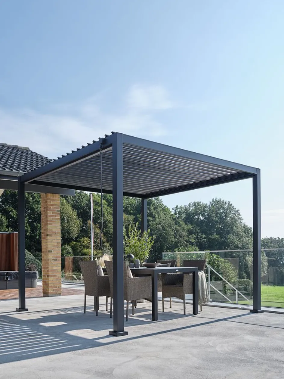 - Lamelles de toit réglables : réglez l’angle des lamelles pour obtenir le niveau d’ombre souhaité
