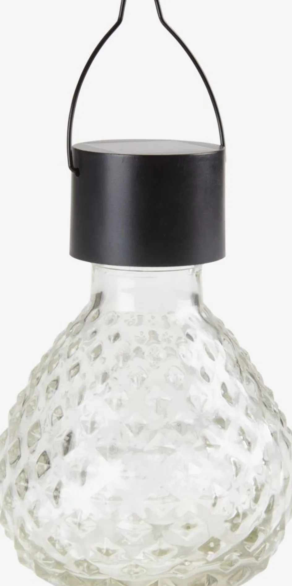 Lampe solaire transparente qui éclaire jusqu’à 6 heures. La lampe est dotée d’une poignée pratique pour la déplacer facilement ou la suspendre afin de décorer un espace cosy sur votre terrasse ou balcon. Ø9 x H13 cm