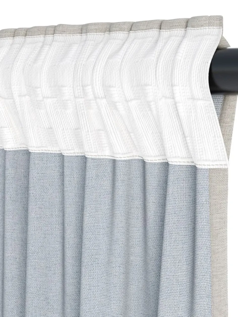 | En-tête de rideau | Bande de renfort et crochets, Tête coulissée |