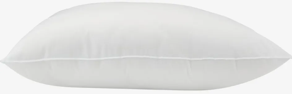 Oreiller synthétique 60×63/70 cm avec garnissage en fibre siliconée de polyester, 450g. Enveloppe en 100% polyester. Lavable à 40°C délicat.