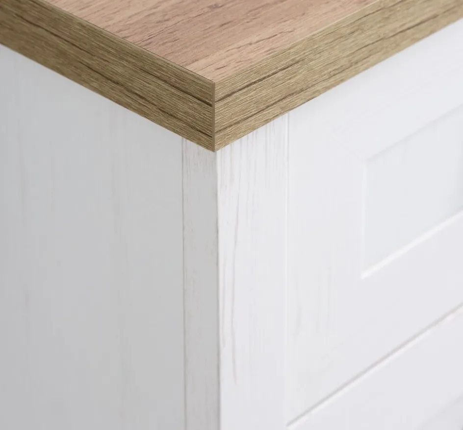 Face avant, face avant tiroir : MDF et panneau de particules, mélaminé. Partie supérieure et inférieure, côtés, étagères : panneau de particules mélaminé. 4 tiroirs, 1 porte. l92 x H88 x P43 cm