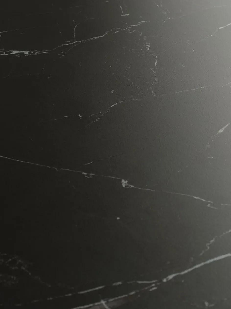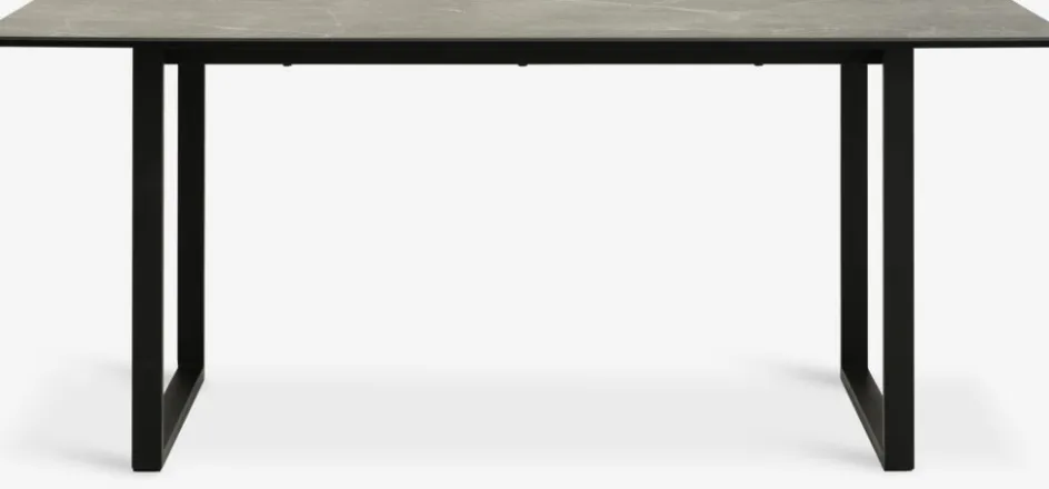 Table de salle à manger avec plateau en céramiques noires et pieds en acier noir. Le plateau en céramique résiste aux rayures et aux taches, et ses propriétés de résistance à la chaleur vous permettent de placer des objets chauds directement sur la surface. l90 x L180 x H75 cm