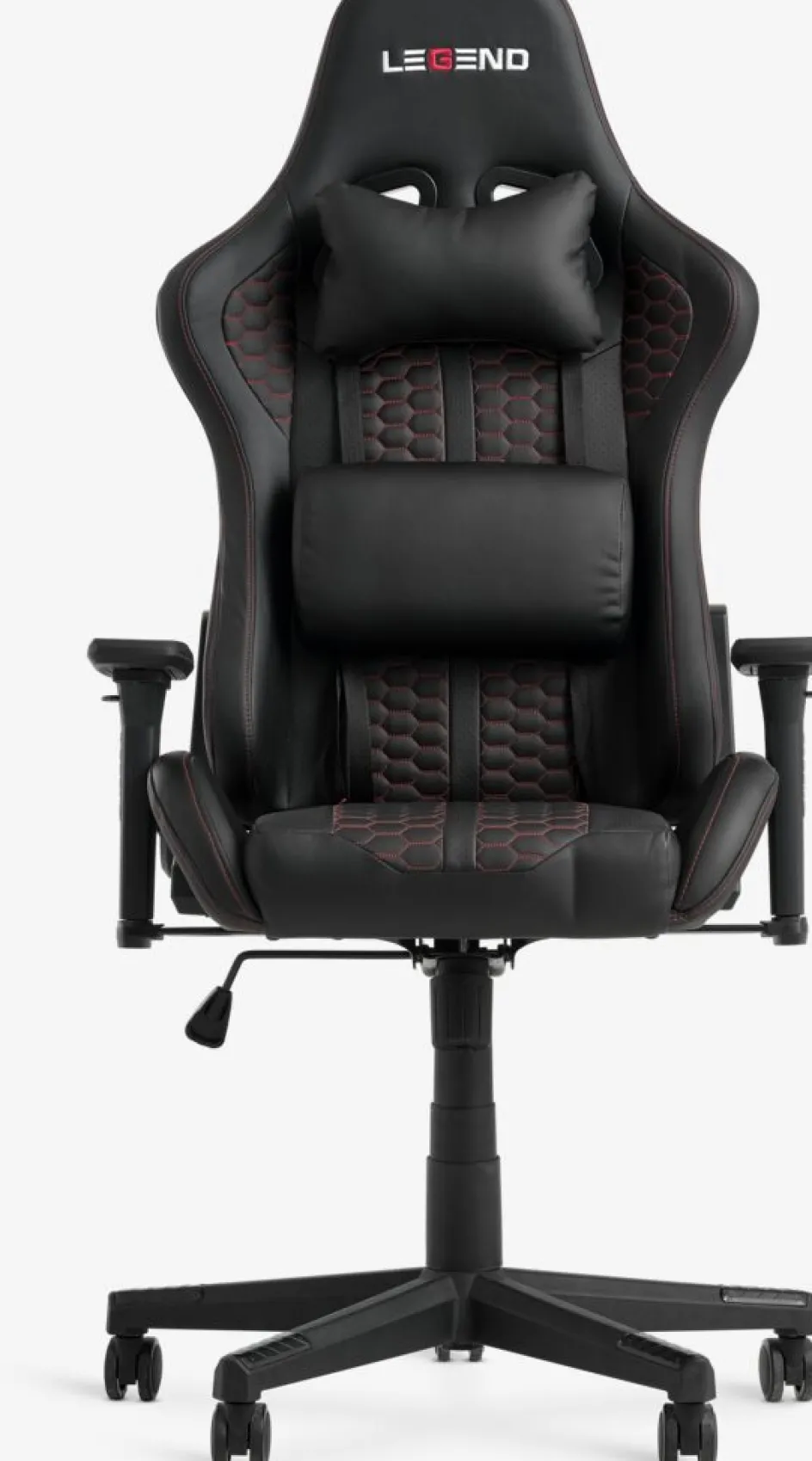 La chaise gaming NIBE de LEGEND allie confort ajustable et style, pour que vous puissiez jouer en toute confiance. Les coussins inclus offrent un soutien confortable à la nuque et aux lombaires. Les accoudoirs et le dossier sont réglables en fonction de vos besoins. Le siège est recouvert en similicuir noir avec des surpiqûres rouges dans un motif graphique. l70 x H126-136 x P70 cm