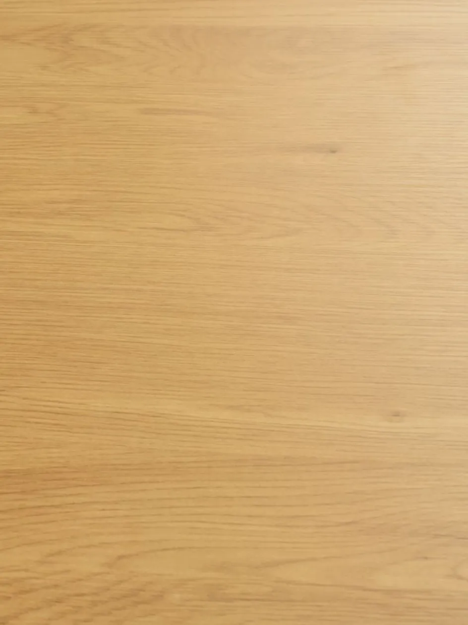 Table de salle à manger ronde avec plateau en placage décoratif aspect chêne et pieds en acier noir. Ø120 x H75 cm